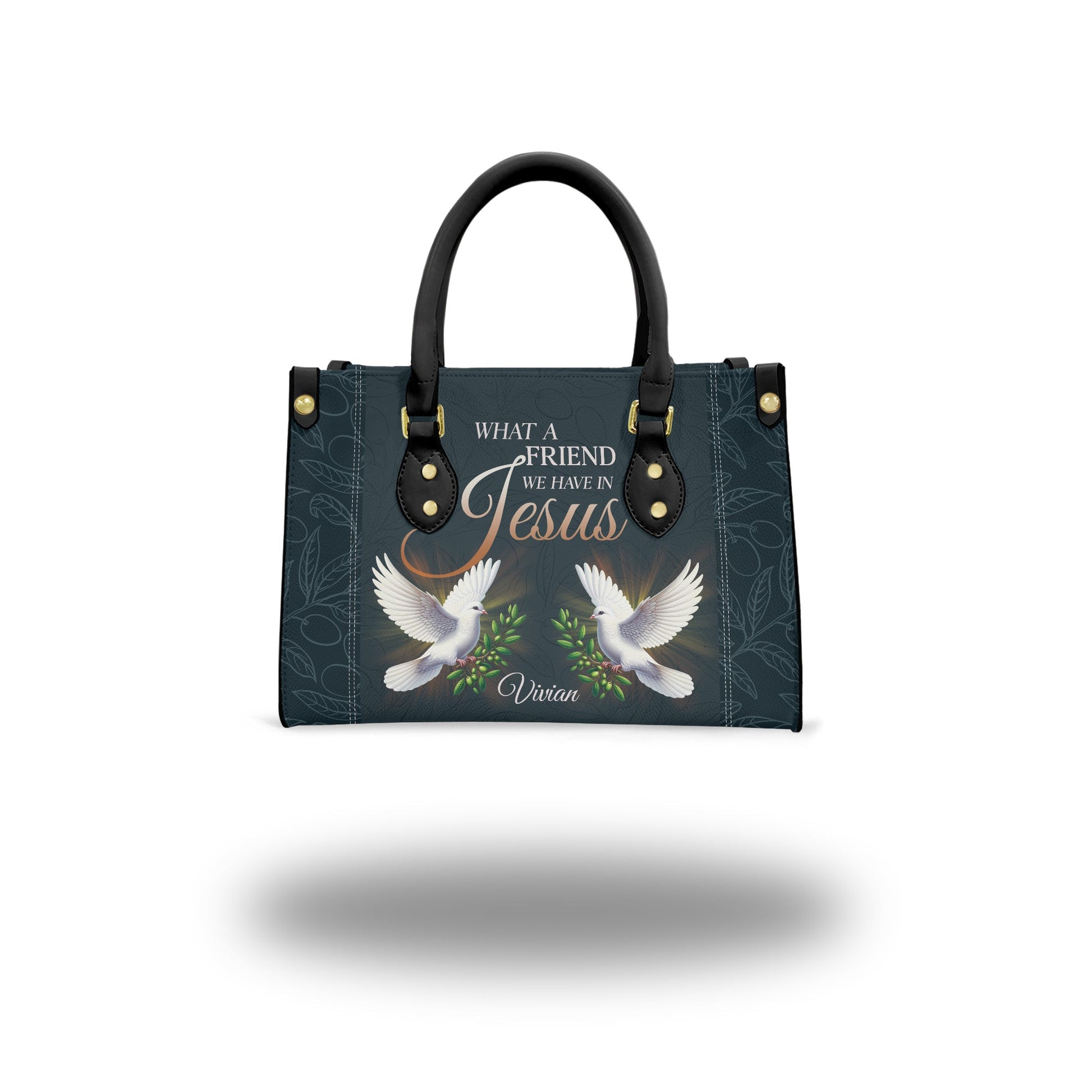 HB96 - Personalized Christian Handbag β What a Friend We Have in Jesus with Doves | Custom Name Faith Purse for Women