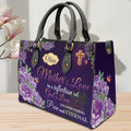 HB53-personalized christian handbag with floral design, custom name faith purse for mom, purple pu leather religious gift