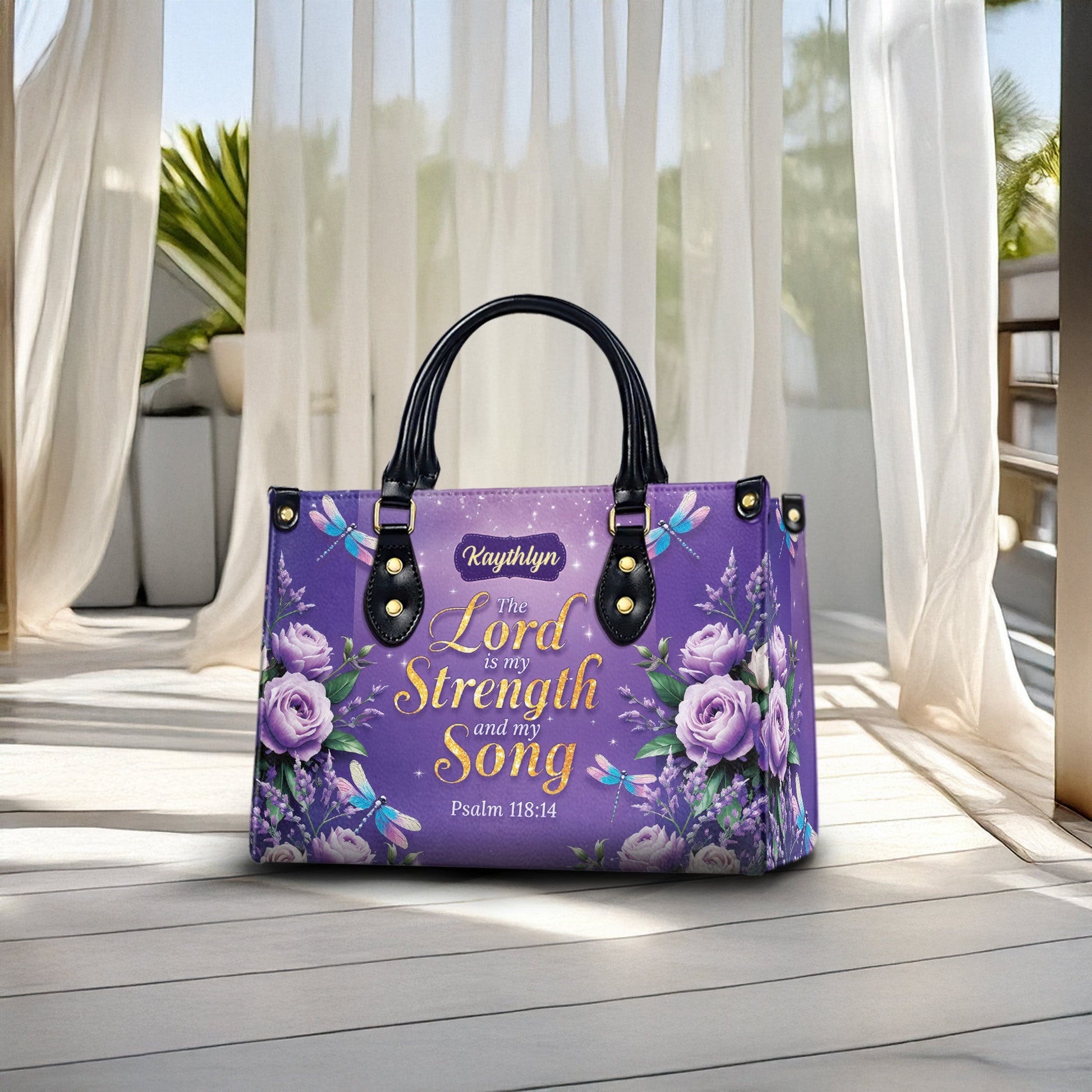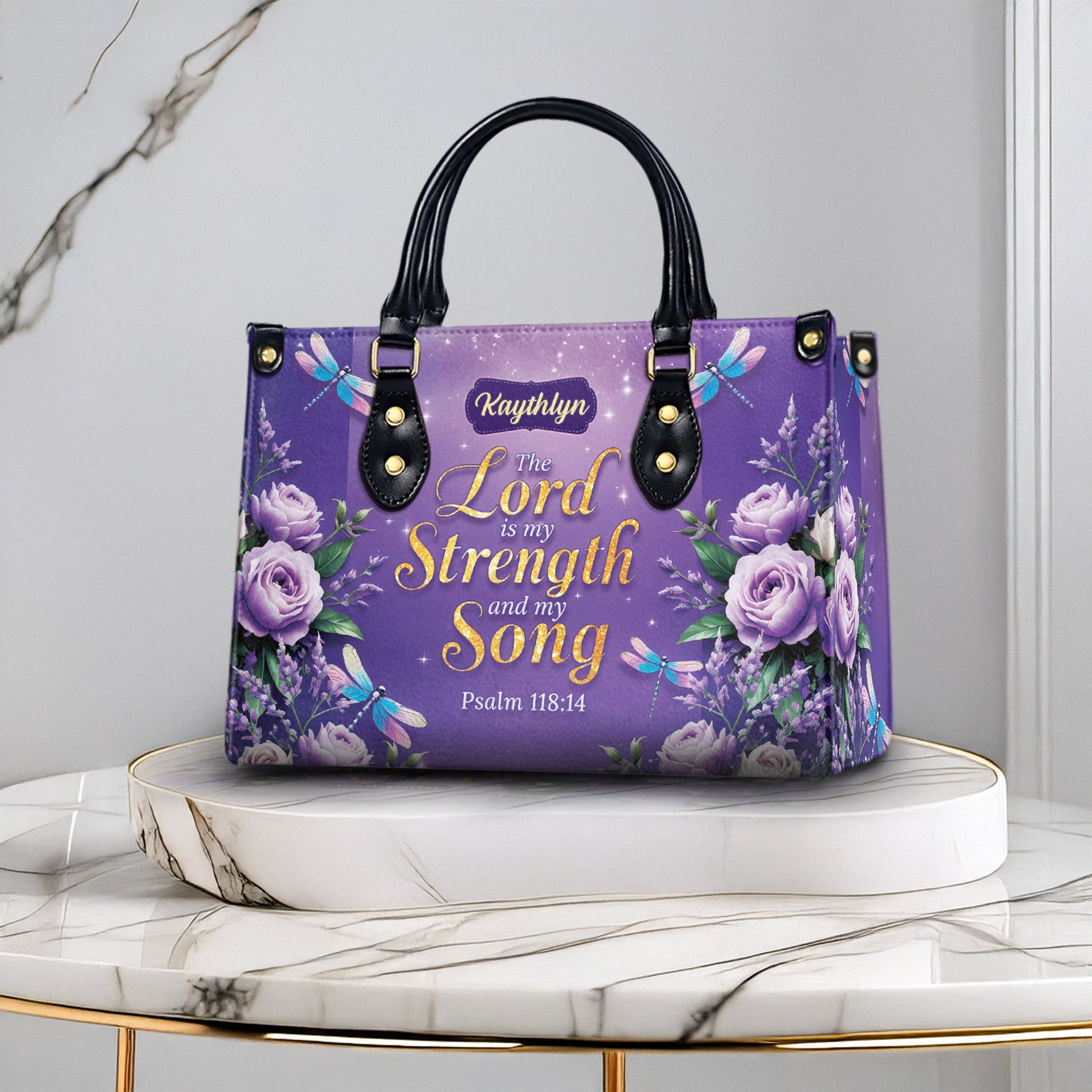 HB26-Personalized Christian Handbag, The Lord Is My Strength leather Handbag with handle, Bible Verse Gift for Women, mother's day gift