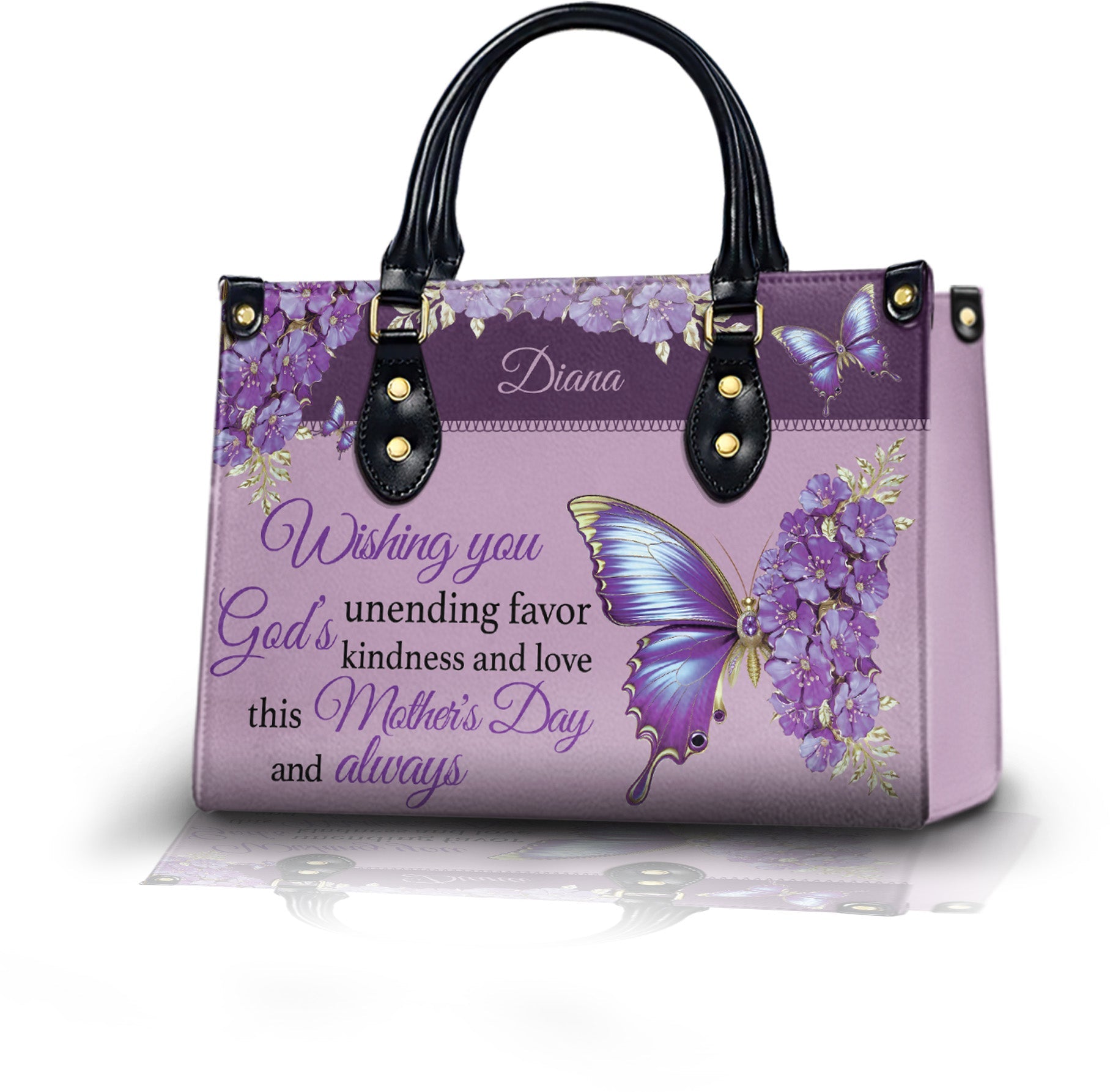 HB97 - Personalized Christian Mother’s Day Handbag – Purple Butterfly Floral Gift for Mom with Custom Name