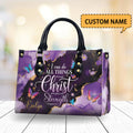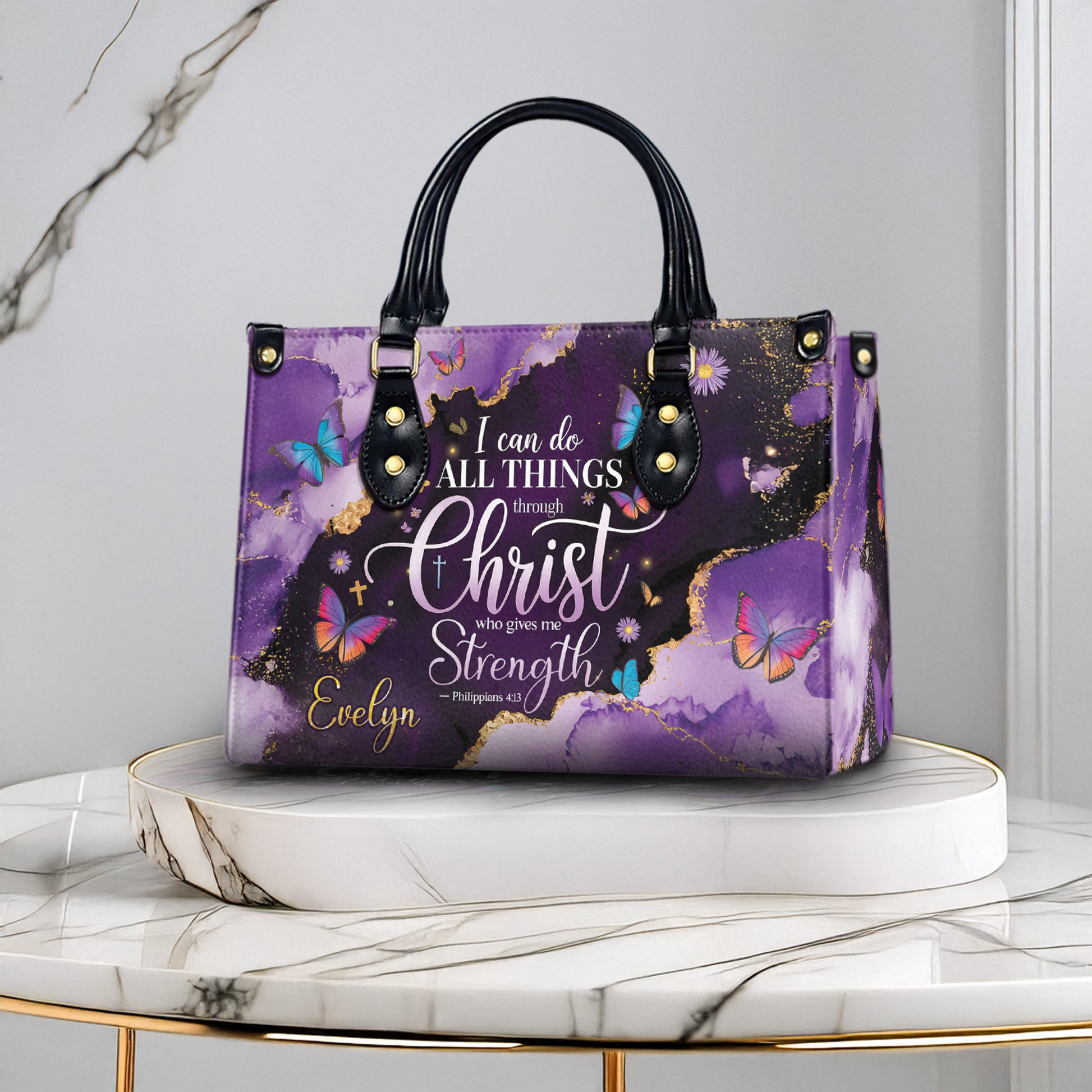 HB09-Personalized Christian PU Leather Handbag - Custom Name Philippians 4:13 Bible Verse Tote - Faith-Inspired Purse, Religious Gift for Women