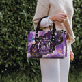 This faith-inspired handbag is perfect for Christian women who want to carry a reminder of God's strength and grace in their daily lives. With elegant purple marble textures, delicate butterflies, and golden accents, this bag is both stylish and meaningful.