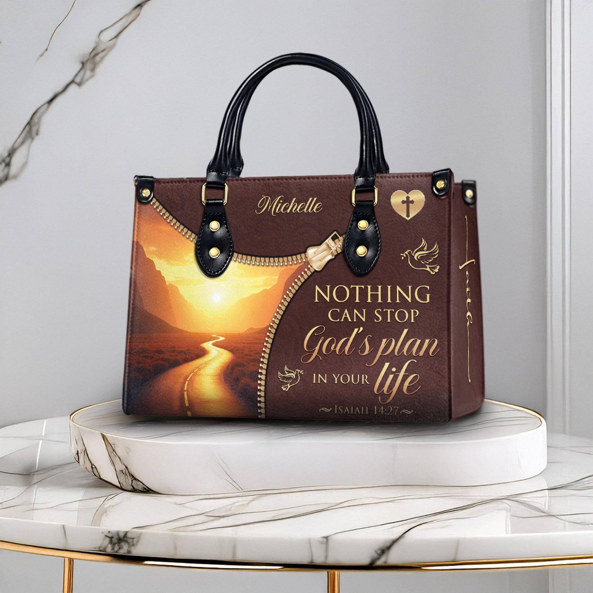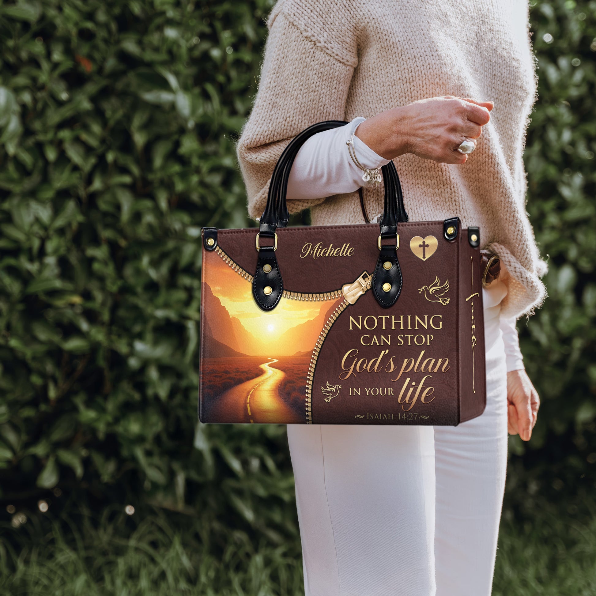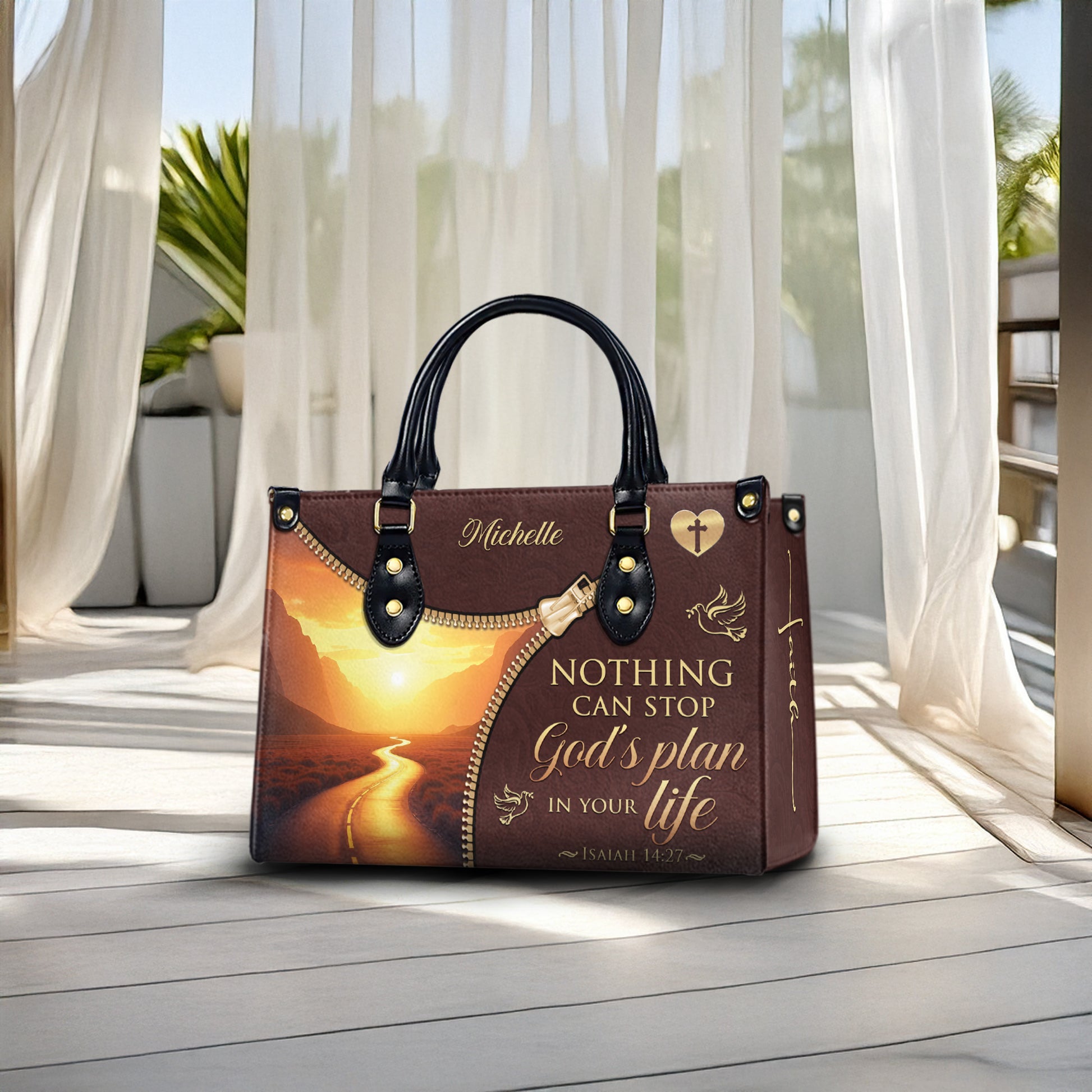 HB07-Christian PU Leather Handbag for Women - Faith-Based Leather Purse - Nothing Can Stop God's Plan - Bible Verse Isaiah 14:27 Gift for Her