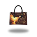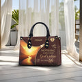 Express your faith with this beautifully designed PU leather handbag, featuring an inspiring Bible verse from Isaiah 14:27: "Nothing can stop God's plan in your life." This elegant and meaningful bag is perfect for Christian women who want to carry a reminder of God's guidance wherever they go.