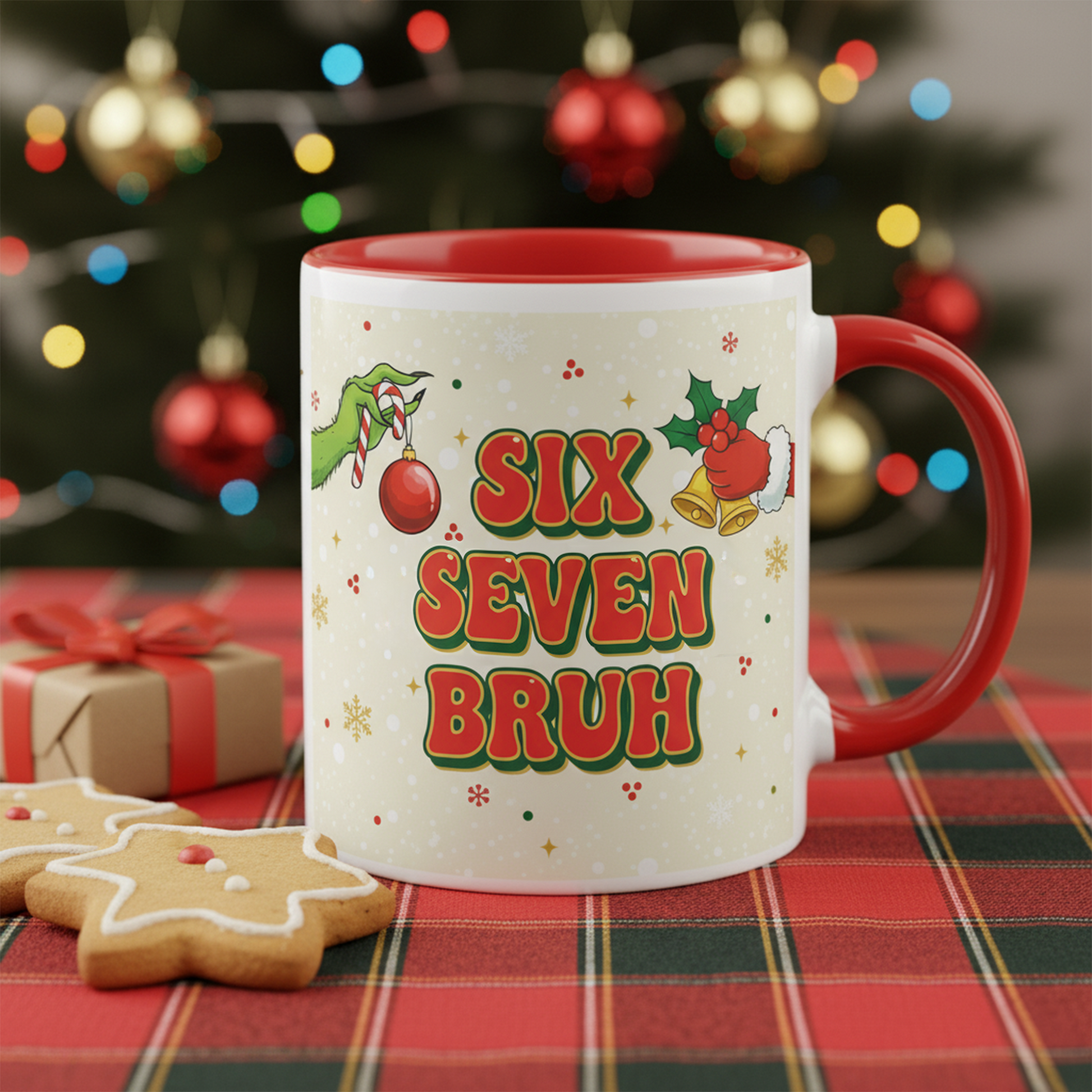 🎄 Six Seven Bruh Christmas Mug – Funny Holiday Coffee Cup