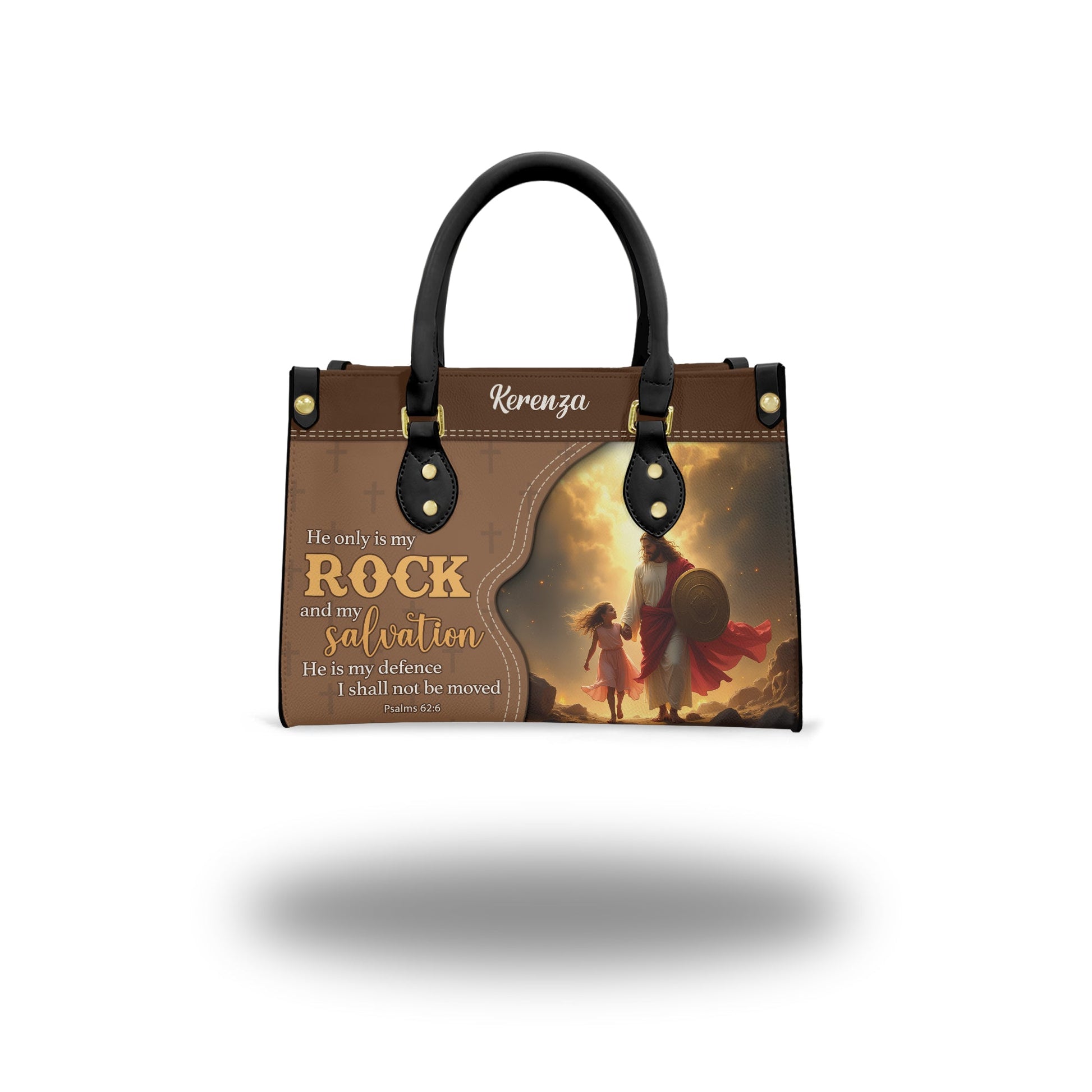 HB73-Christian Handbag with Jesus and Little Girl β Psalm 62:6 Scripture Bag β Faith-Based Purse with Custom Name β Religious Gift for Women