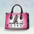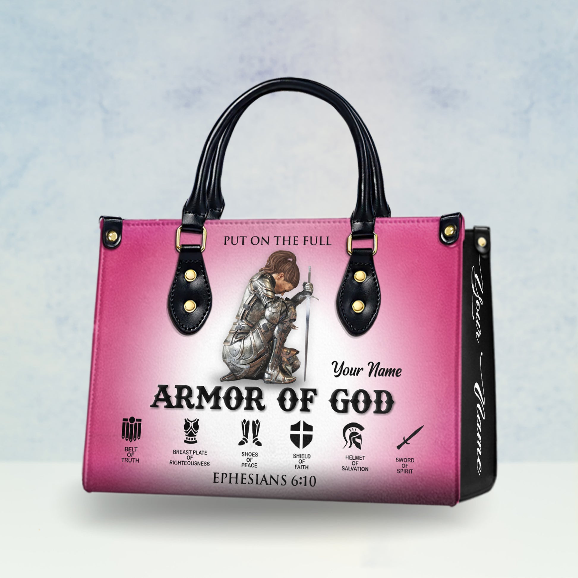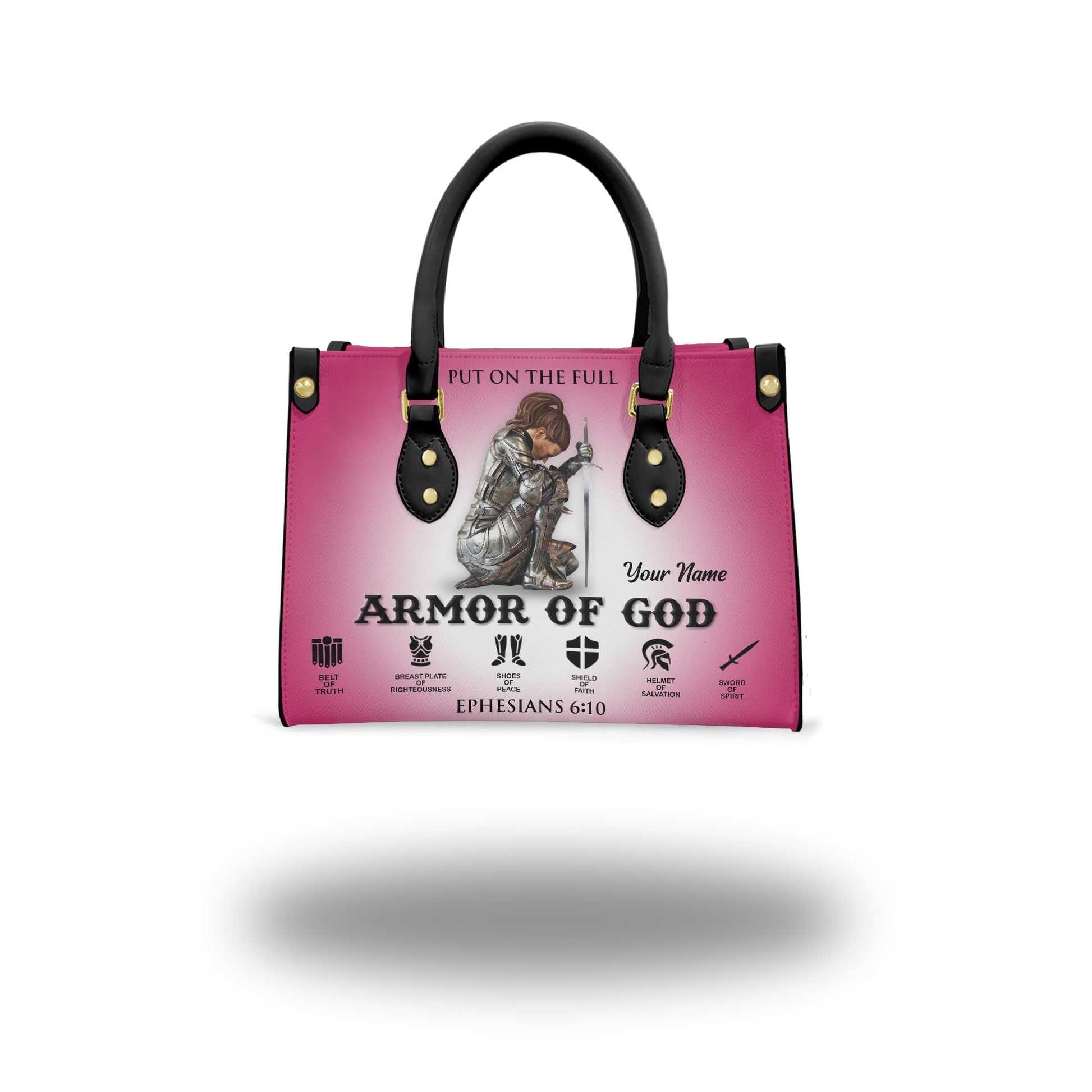 HB56-personalized armor of god handbag for women, christian custom name purse with ephesians 6 10 verse, pink leather faith bag