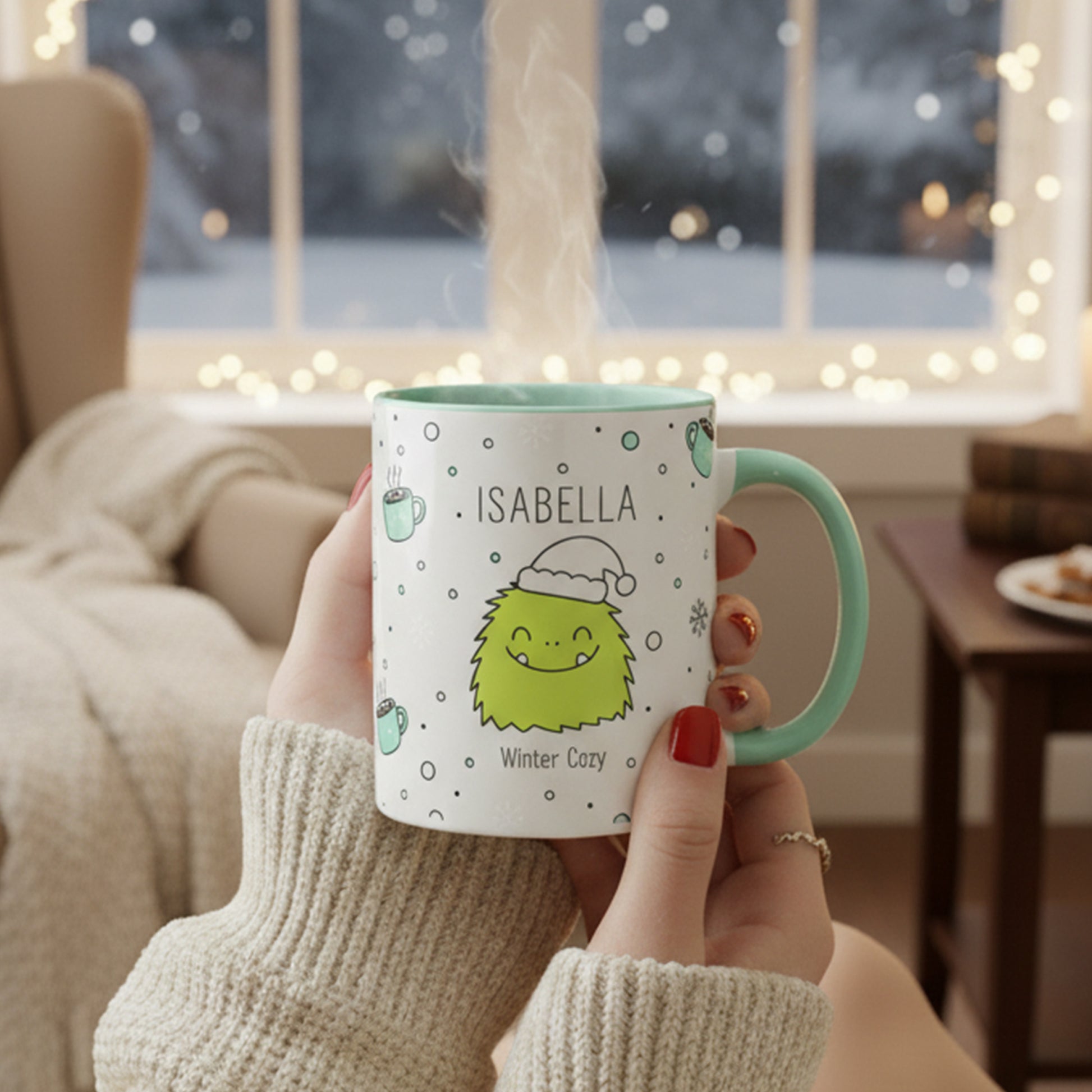 There’s something magical about Christmas mornings — the soft chill in the air, the twinkling lights, and that first sip of hot cocoa or coffee. Now imagine holding a mug featuring a cute Winter Cozy Monster along with a personalized name, made just for you or someone you love.