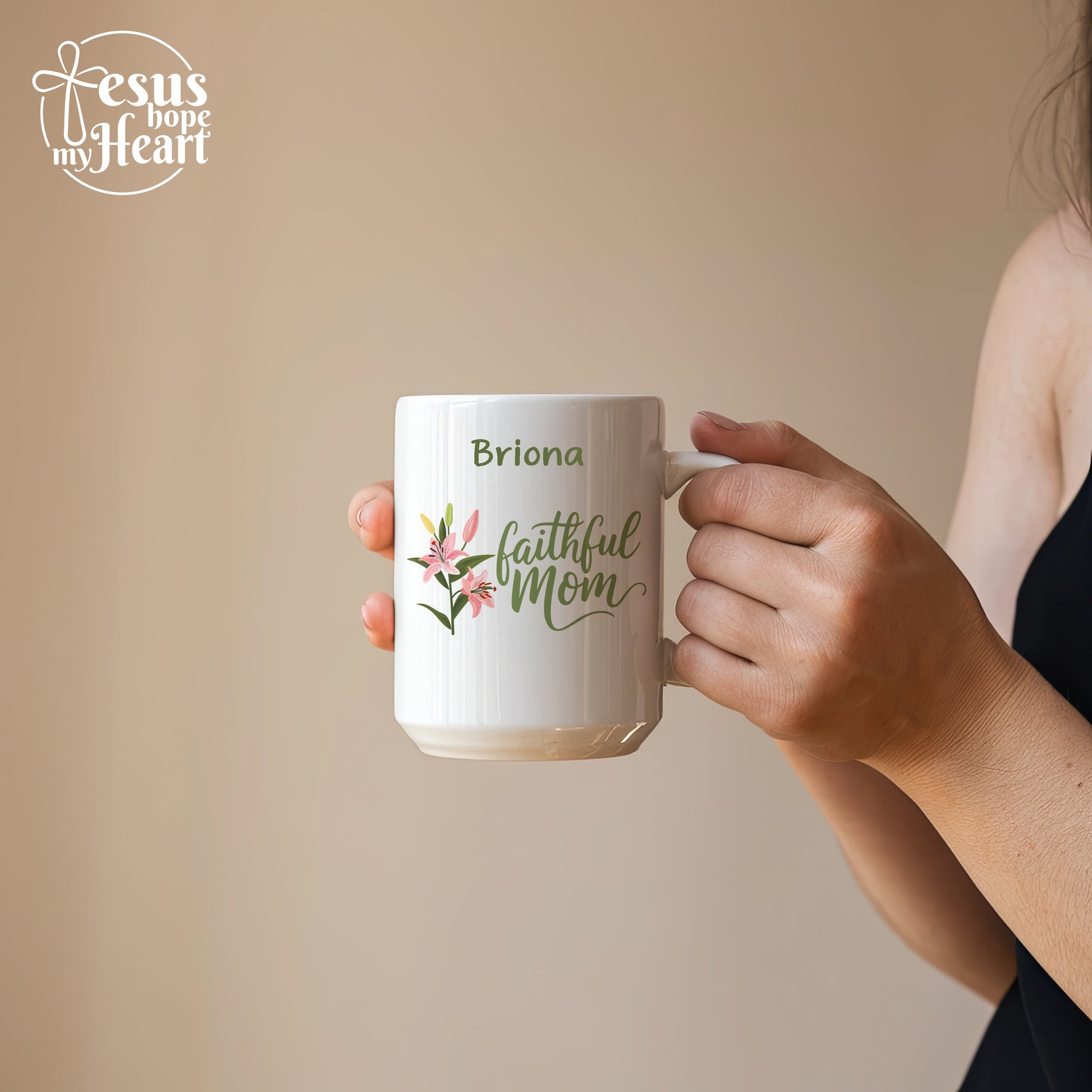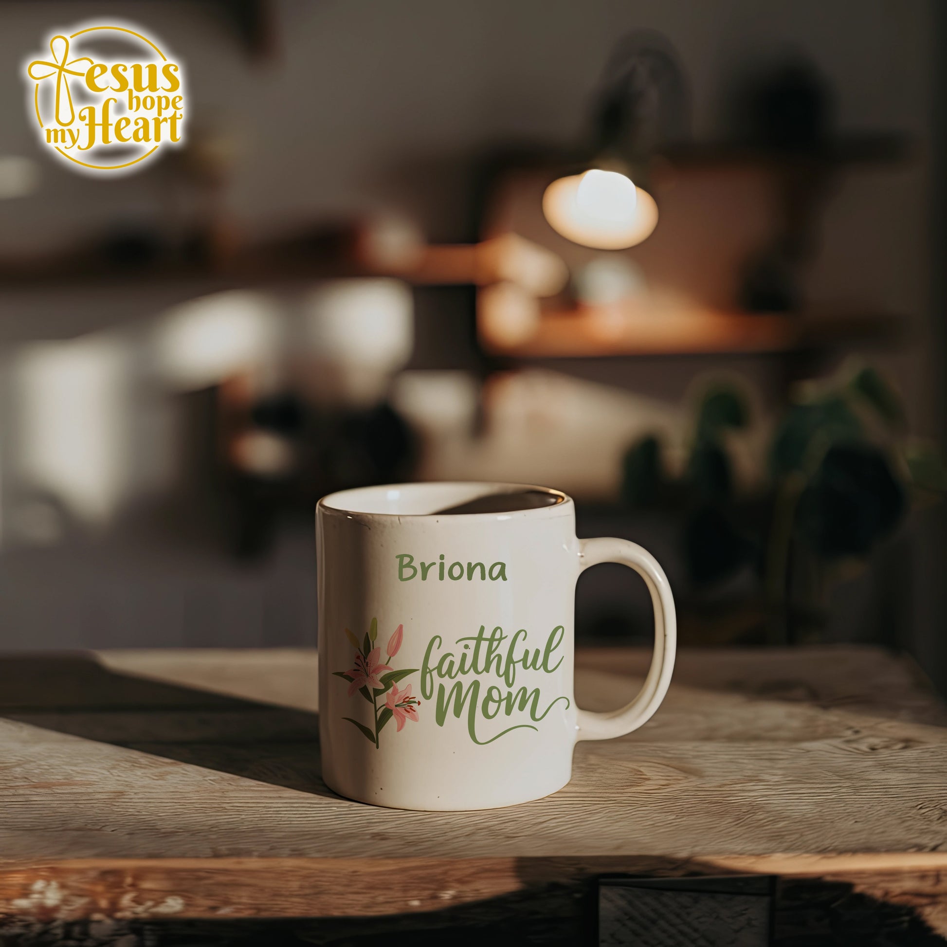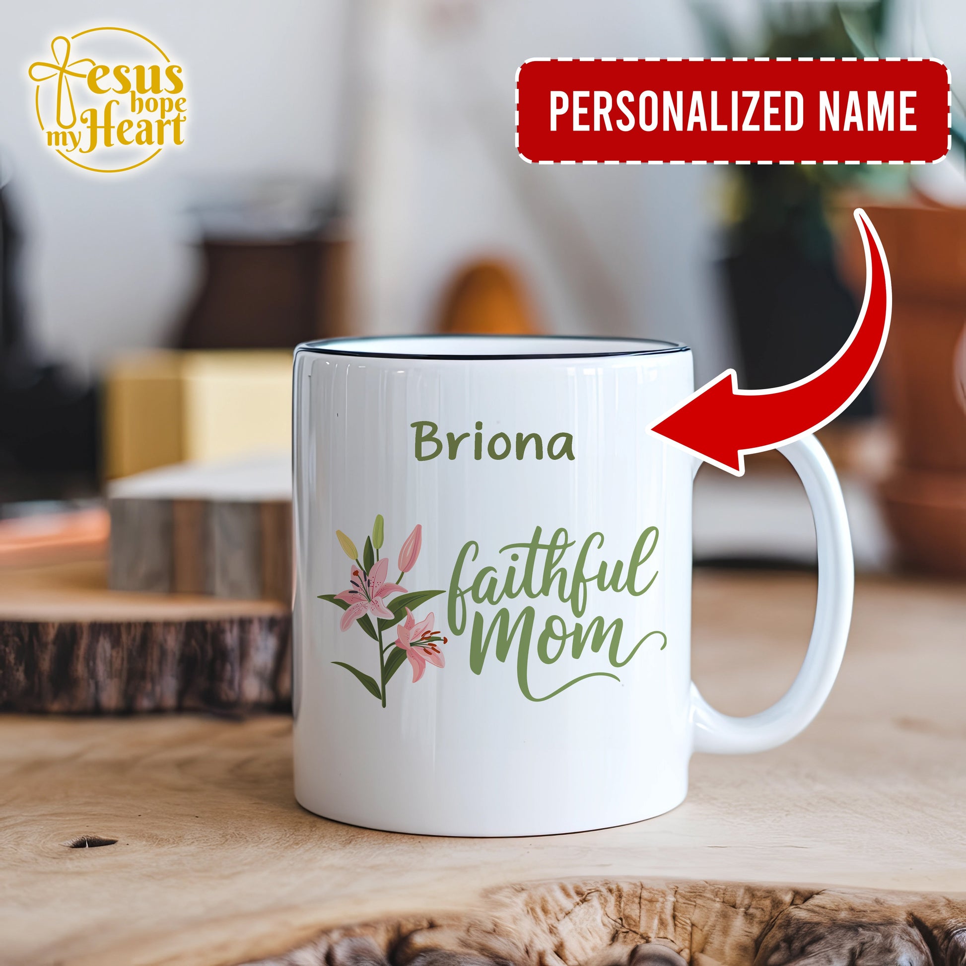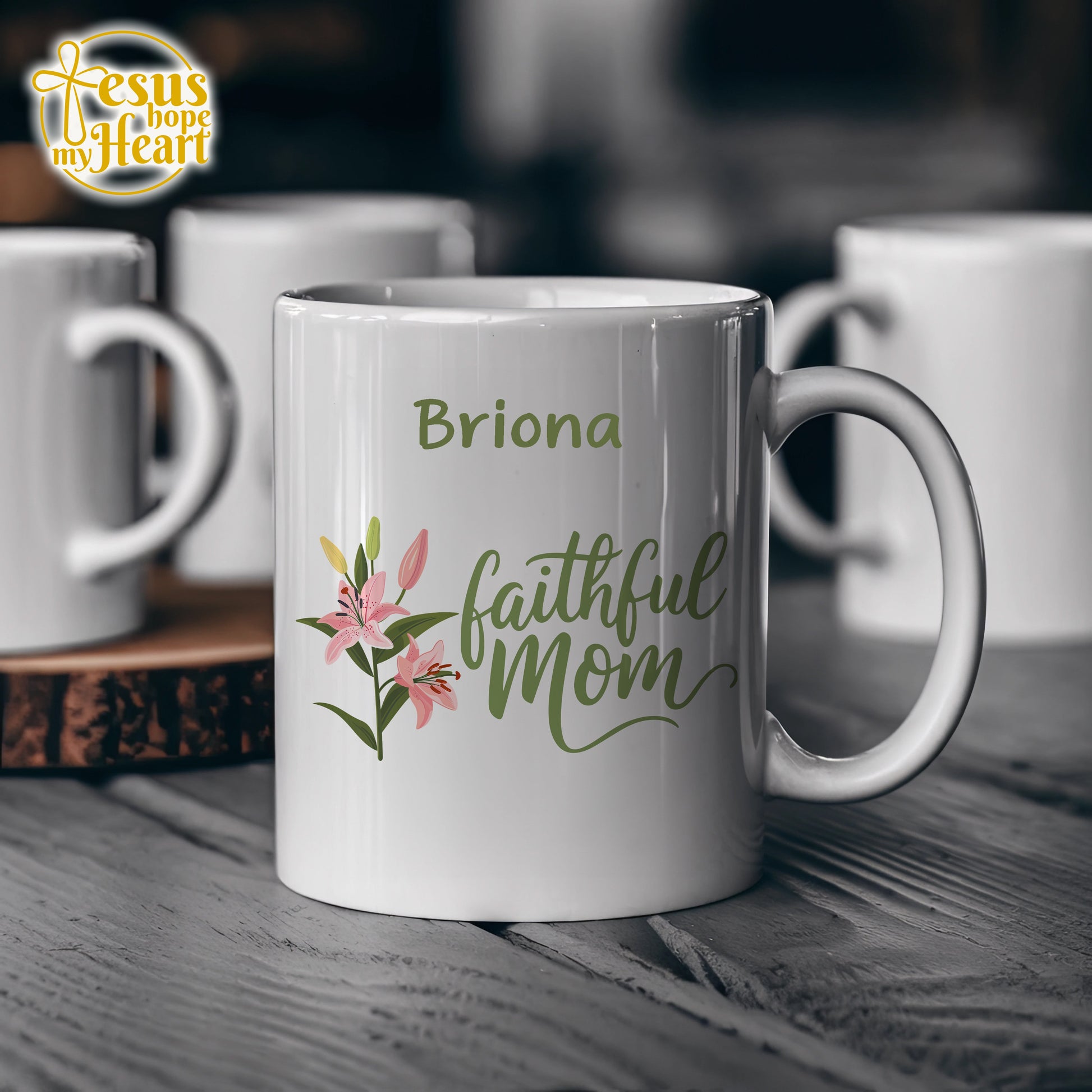 ☕ Custom Faithful Mom Mug – Personalized Christian Mug Gift for Mom, Floral Coffee Cup for Women of Faith 🌸