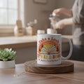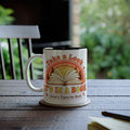 Whether you start your morning with coffee or unwind at night with tea, this cozy design brings extra joy to every sip ☕. The retro sunset, open-book artwork, and soft tones create a comforting vibe book lovers adore.