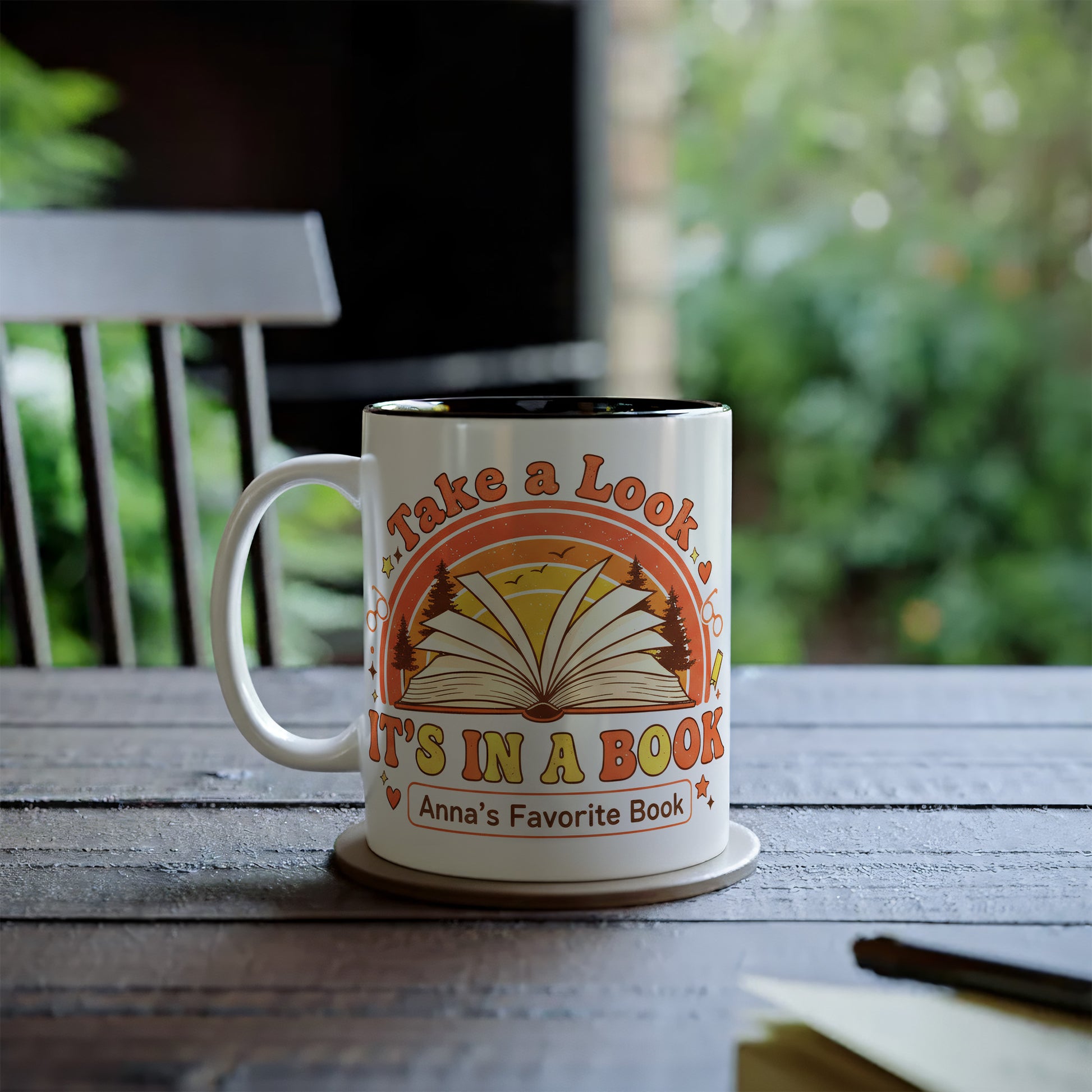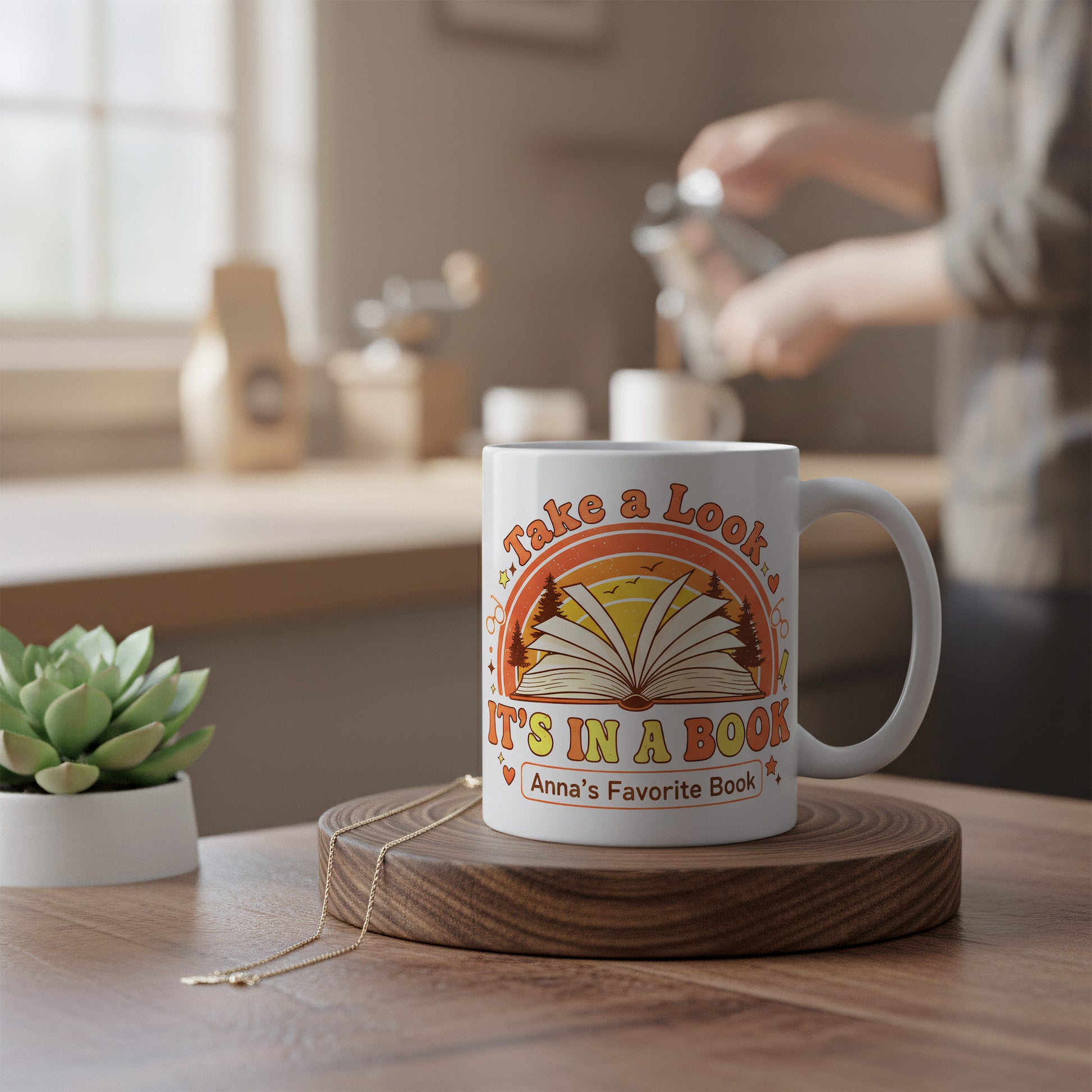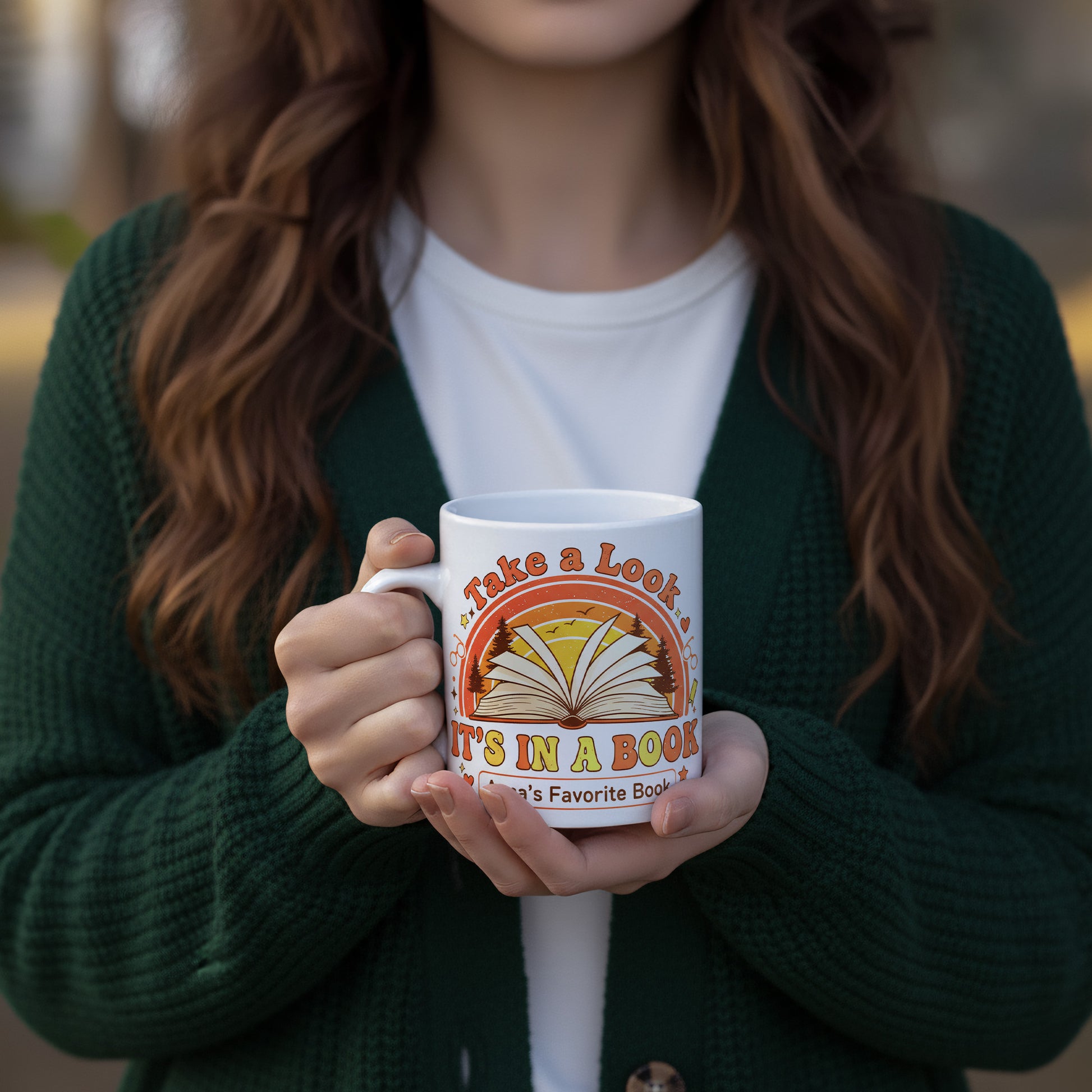 Personalized Book Lover Mug, Custom Name Reading Mug, Vintage Book Aesthetic Gift, Take a Look It's in a Book Coffee Cup| Mug 87