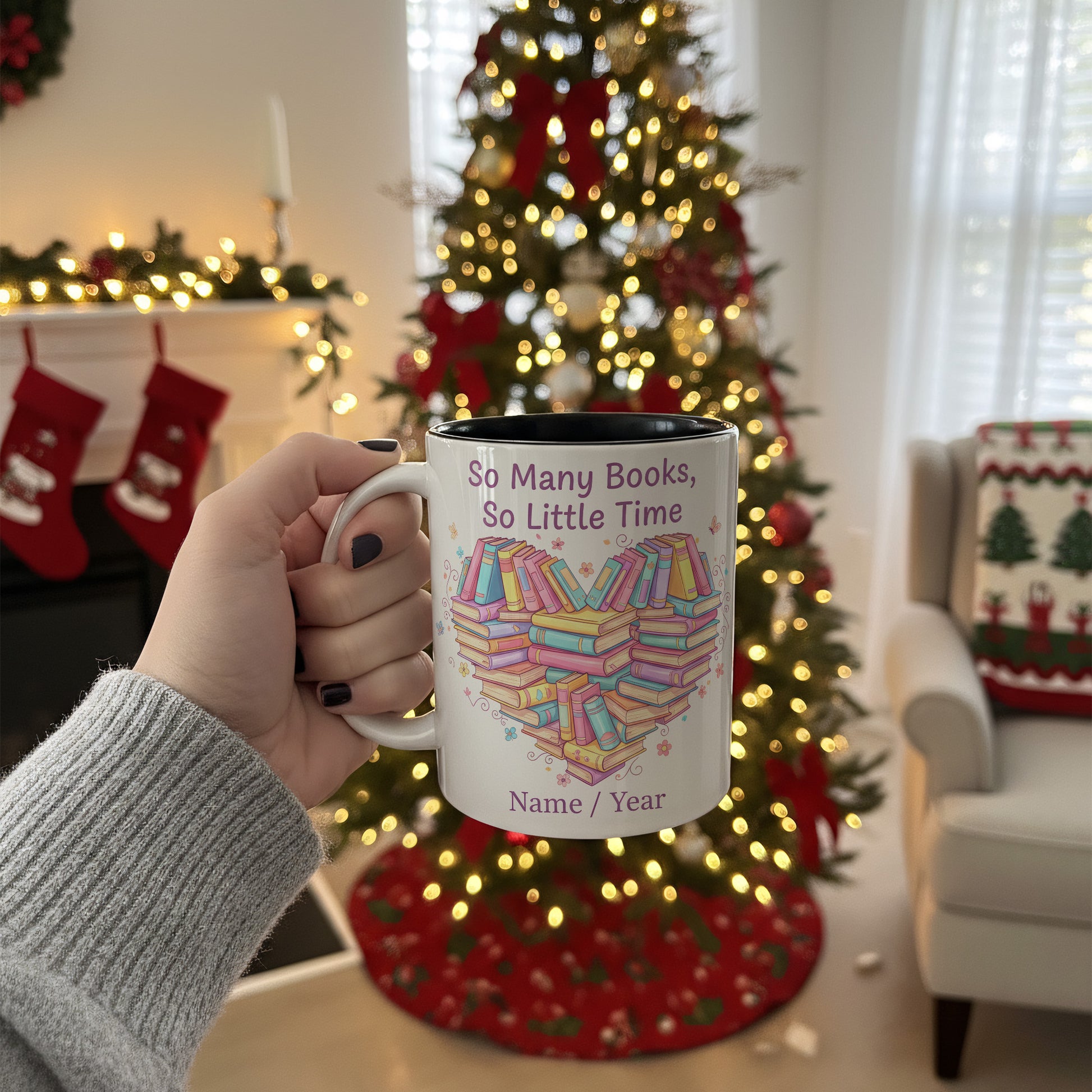 This personalized “So Many Books, So Little Time” mug is made for readers who can never resist “just one more page.” With a heart-shaped book design and your custom Name/Year, it becomes a daily reminder of the joy and comfort books bring ✨.