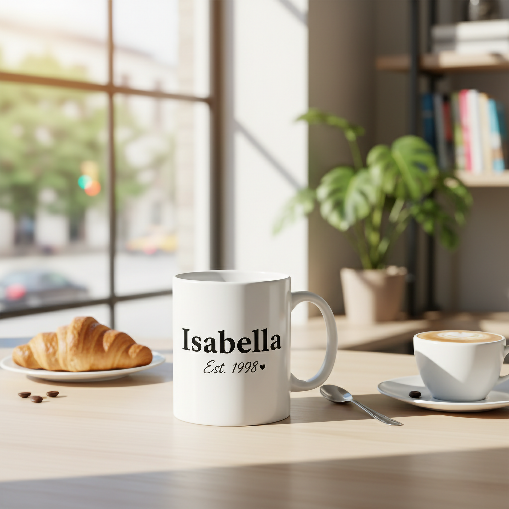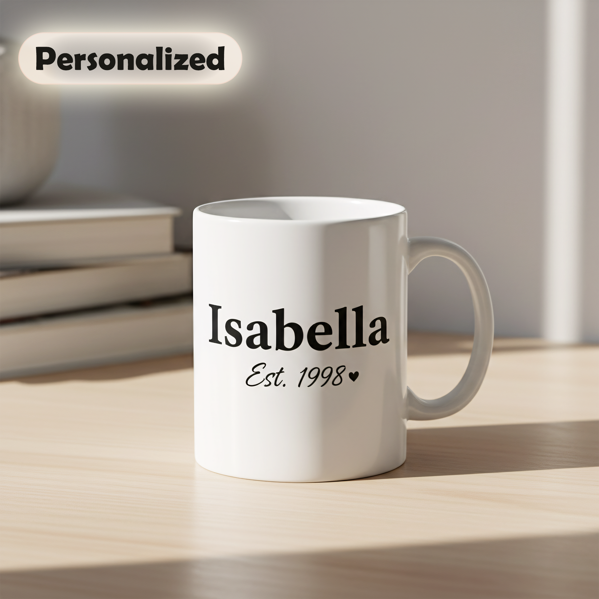 There’s something special about owning something made just for you. A simple morning routine feels warmer and more personal when your name is right there on your favorite mug ☕. This clean, elegant design brings that feeling to life with timeless lettering and a personalized “Est. Year.”