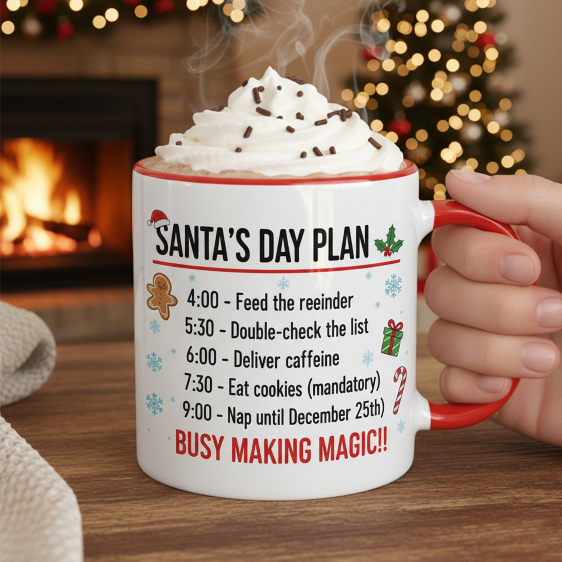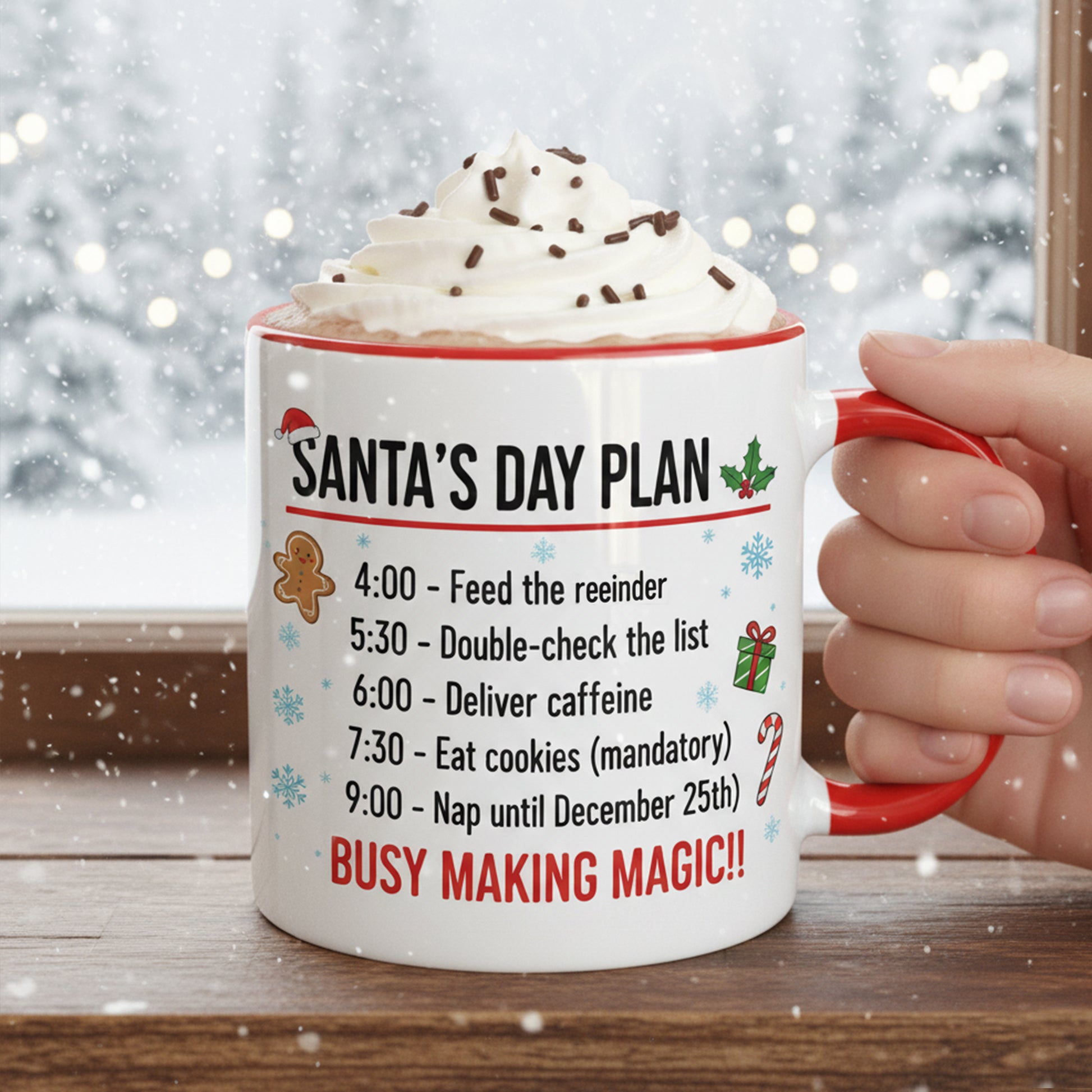 Santa’s Day Plan Mug Christmas Coffee Cup – Funny Holiday Schedule Gift for Christmas Lovers, Santa Busy Making Magic Mug, Holiday Coffee Cup| Mug11
