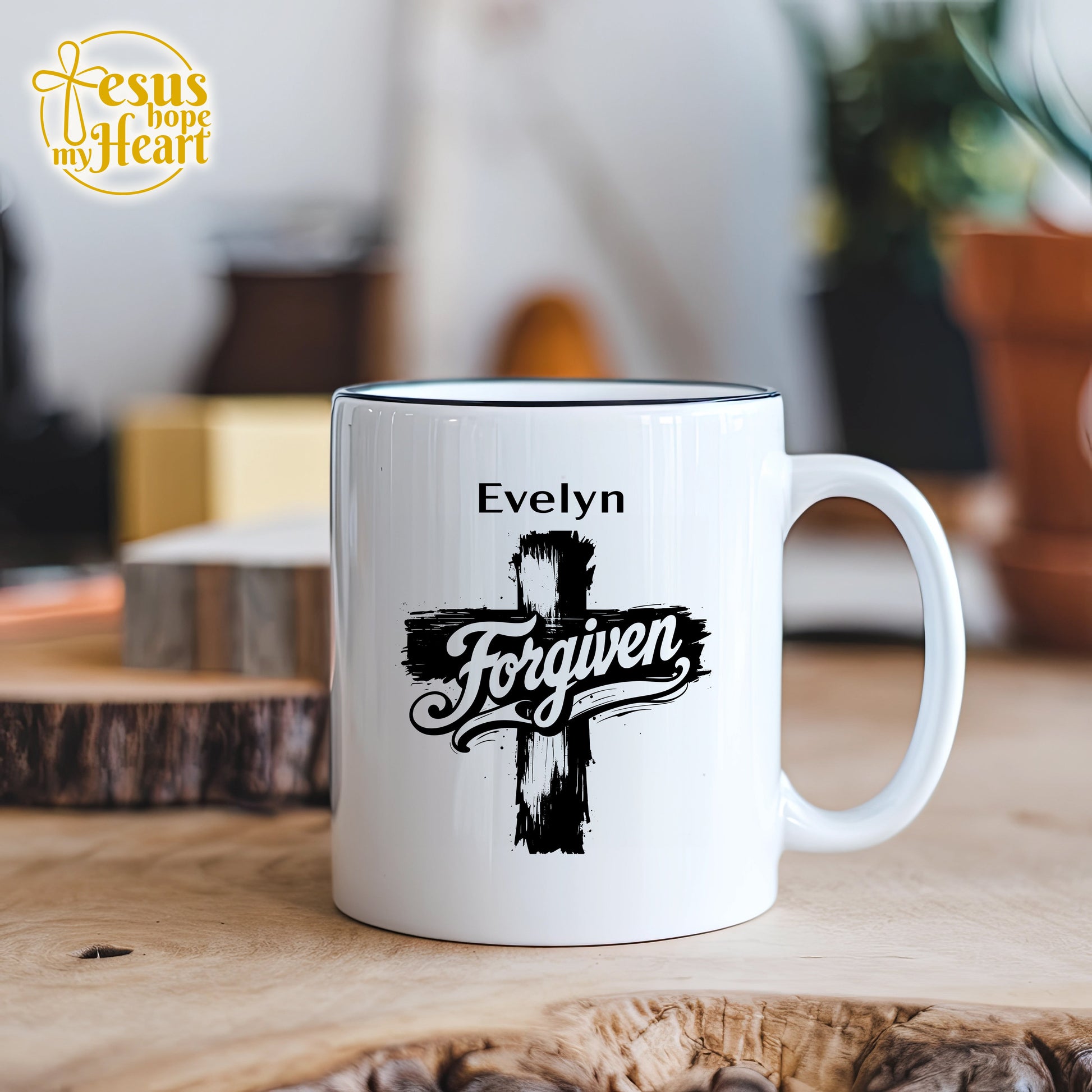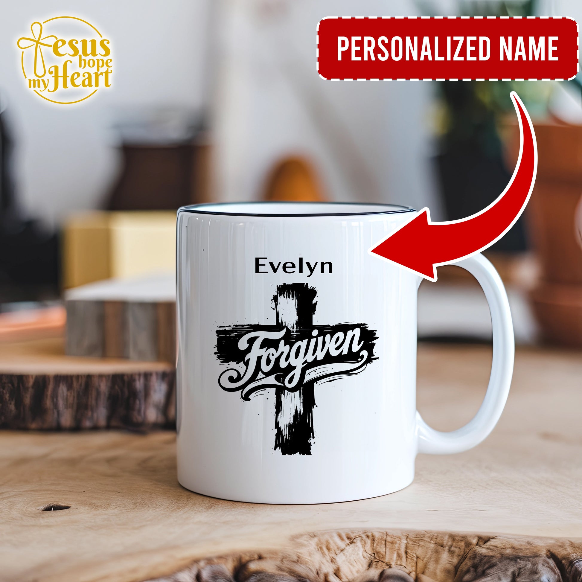 Celebrate God’s grace and the power of forgiveness with this bold and meaningful Forgiven mug. Featuring a striking cross design and the name of your choice, this custom coffee cup is a daily reminder of redemption, faith, and love.