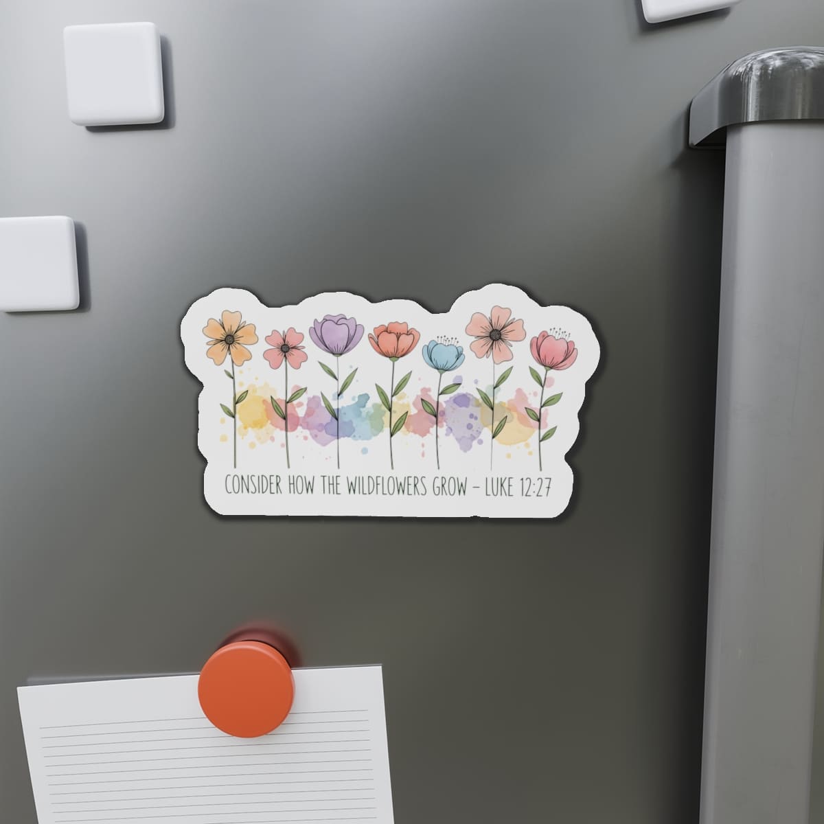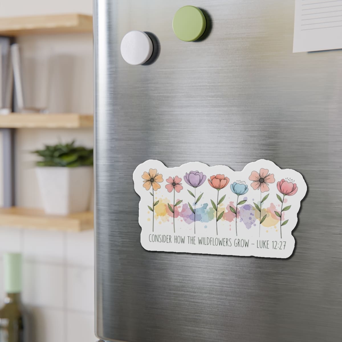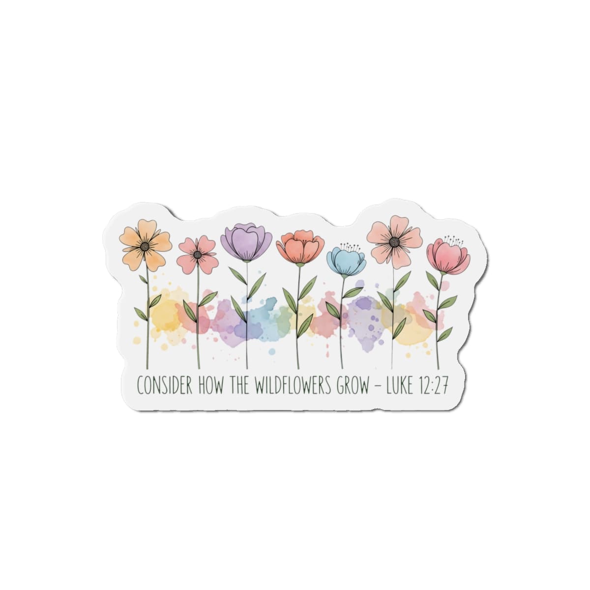 STK23 Wildflower Bible Verse Sticker – Luke 12:27 Christian Vinyl Decal – 3 Inch Waterproof Floral Scripture Sticker for Laptop or Water Bottle