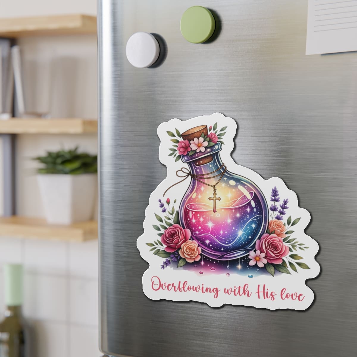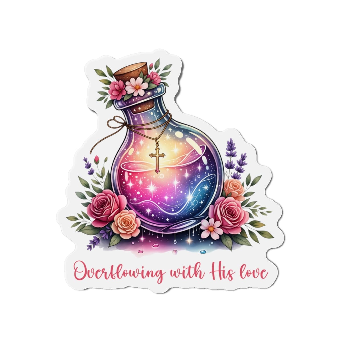 Overflowing with His Love – Christian Vinyl Sticker (3 Inch, Waterproof)
