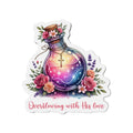 Carry a beautiful reminder of God’s overflowing love wherever you go with this inspiring Christian sticker. Designed with a radiant galaxy bottle, floral accents, and a cross charm, this faith quote vinyl decal brings encouragement, light, and beauty to your everyday essentials.