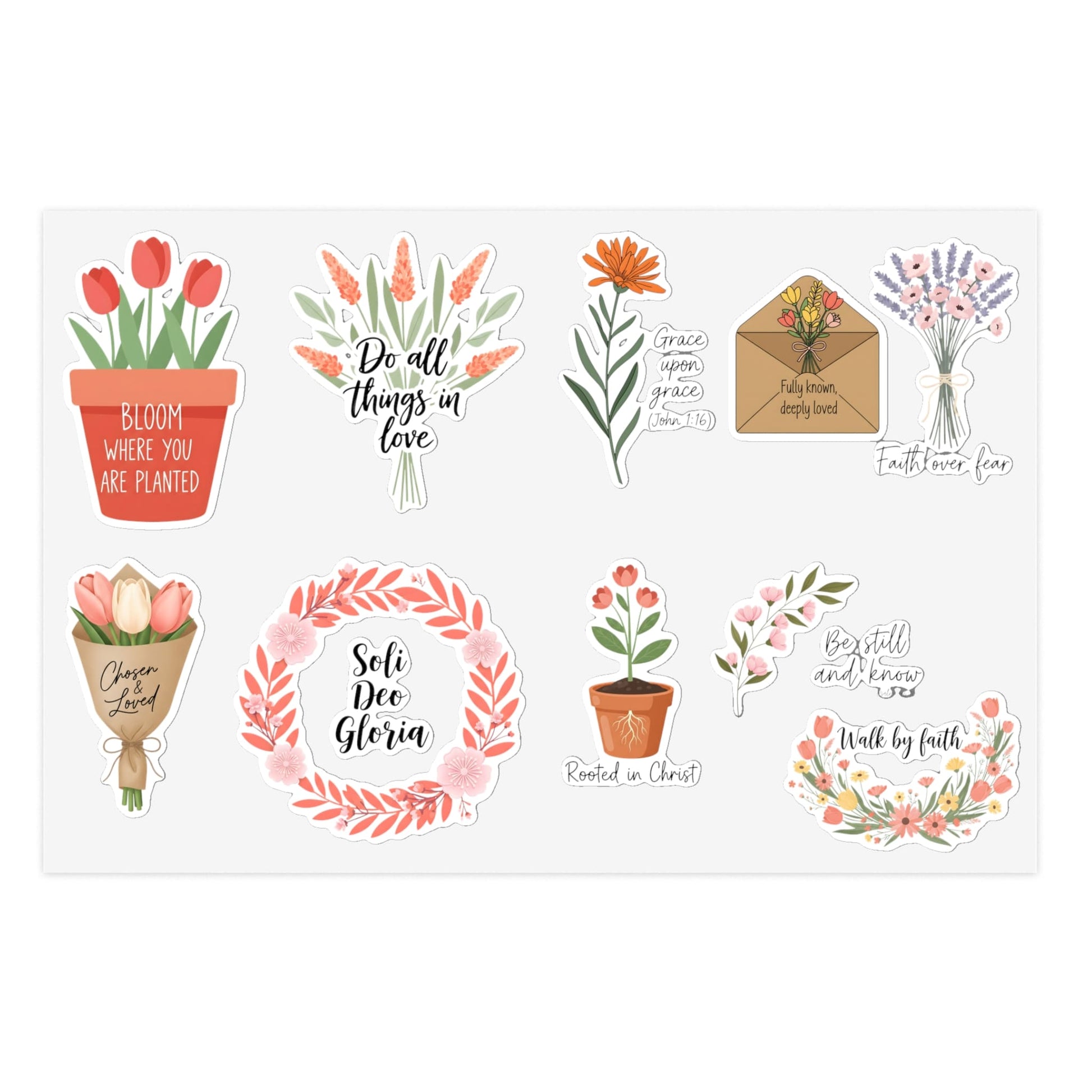 STK33 Christian Sticker Combo Set – 10 Waterproof Faith Quote Vinyl Decals for Laptop, Water Bottle, Journal – Inspirational Bible Verse Stickers