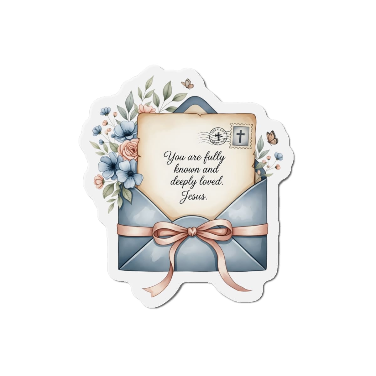 Add a daily reminder of God's love and truth with this uplifting Christian sticker featuring a heartfelt message: "You are fully known and deeply loved. Jesus." Designed for believers who want to carry their faith wherever they go, this sticker is a meaningful way to express your spiritual identity.