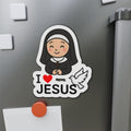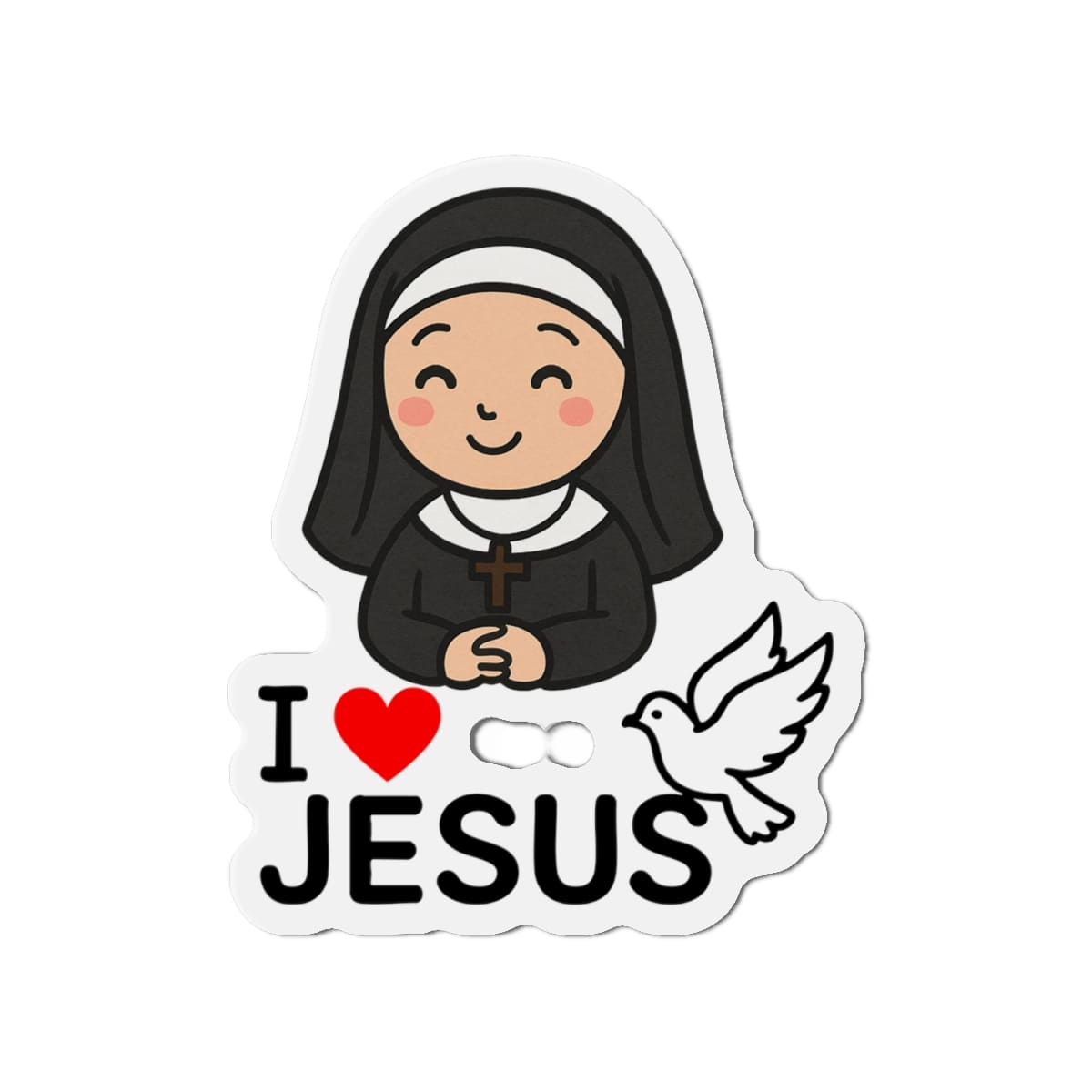 STK48 I Love Jesus Fridge Magnet – Cute Nun with Dove Design – Christian Catholic Refrigerator Decor Gift for Believers