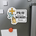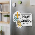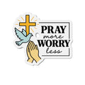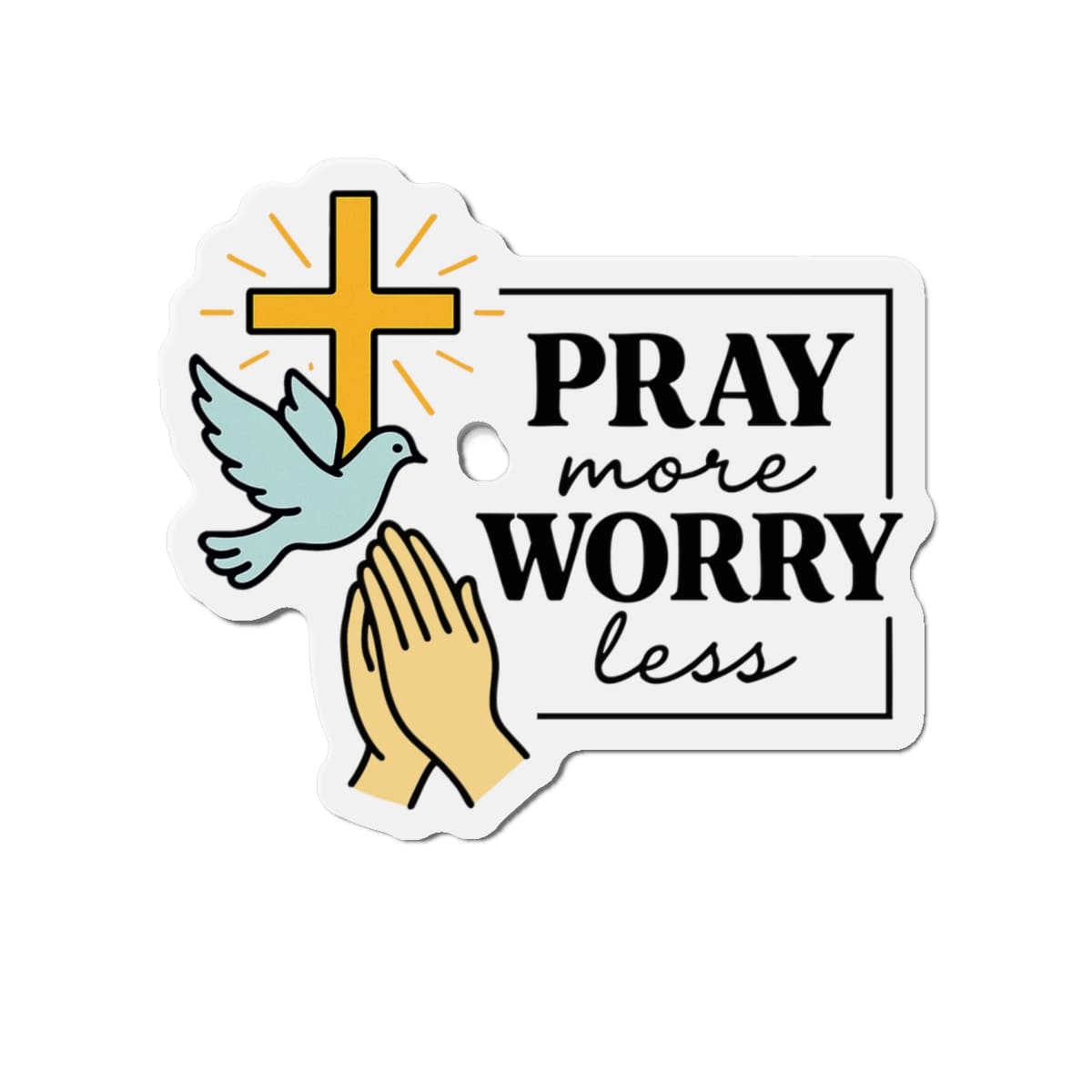 STK49 Pray More Worry Less Christian Fridge Magnet β Faith-Based Refrigerator Decor with Cross, Dove and Prayer Hands β Inspirational Catholic Gift USA