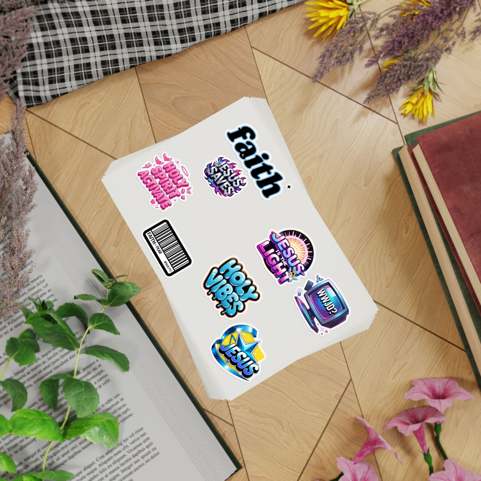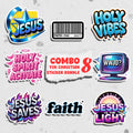 STK56 Christian Sticker Sheet – 8 Faith-Themed Waterproof Vinyl Decals for Laptop, Journal, Water Bottle – Jesus Saves, Holy Spirit, WWJD, Bible Verses