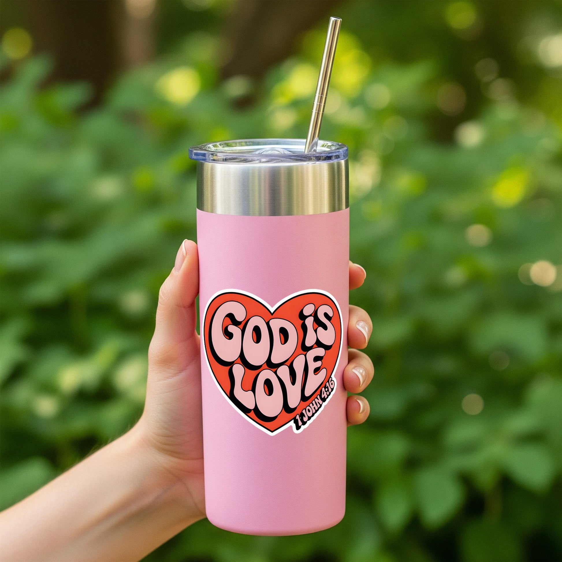 STK79 God Is Love Christian Sticker – 1 John 4:16 Vinyl Decal – Bible Verse Faith Quote – Waterproof 3 Inch Sticker for Laptop, Tumbler, Journal