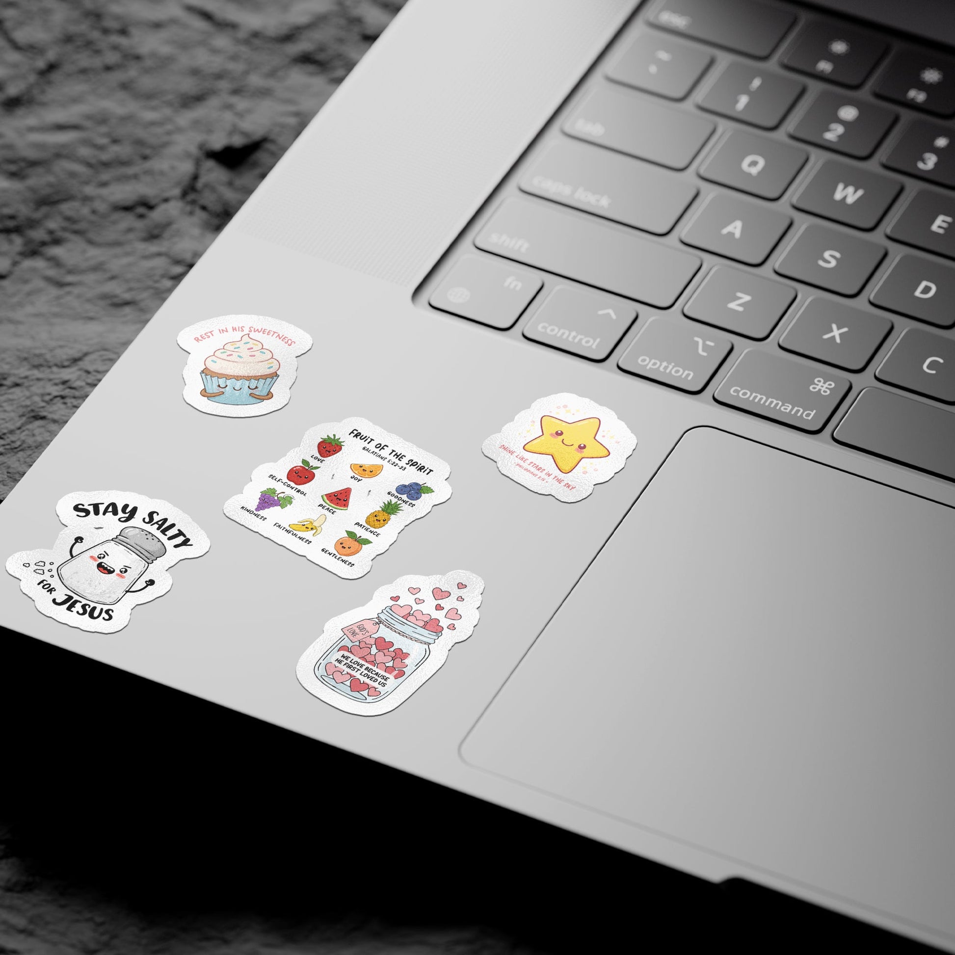 STK85 Christian Cute Sticker Sheet, Fruit of the Spirit Vinyl Decals, Bible Verse Faith Stickers, Jesus Inspirational Quotes, Kids Christian Gift