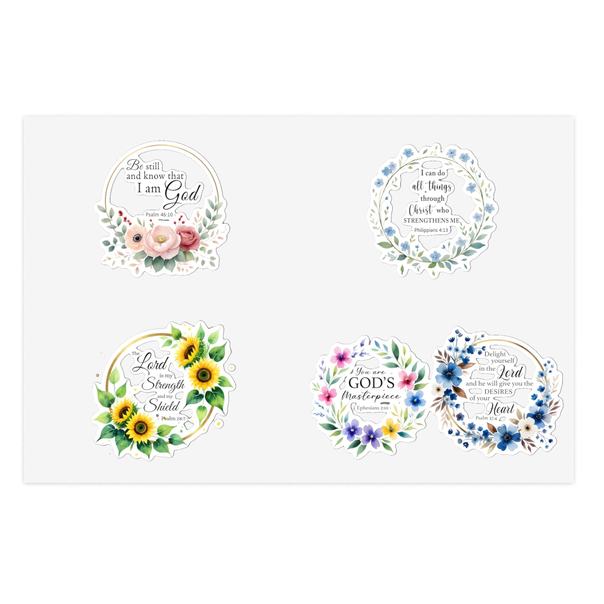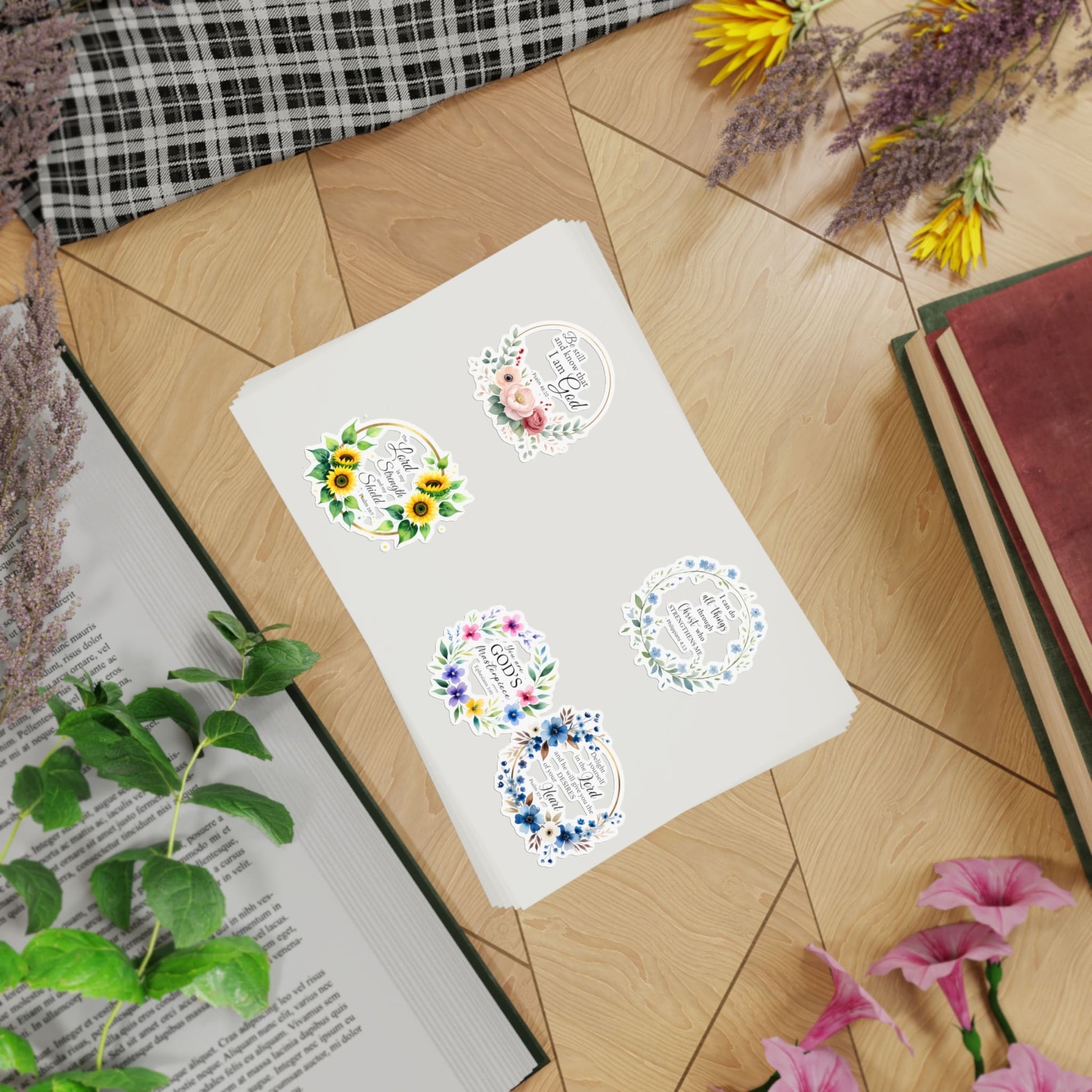 STK145 Floral Christian Stickers with Bible Verses – Waterproof Faith Vinyl Decals for Laptop, Water Bottle, Journaling – Set of 5