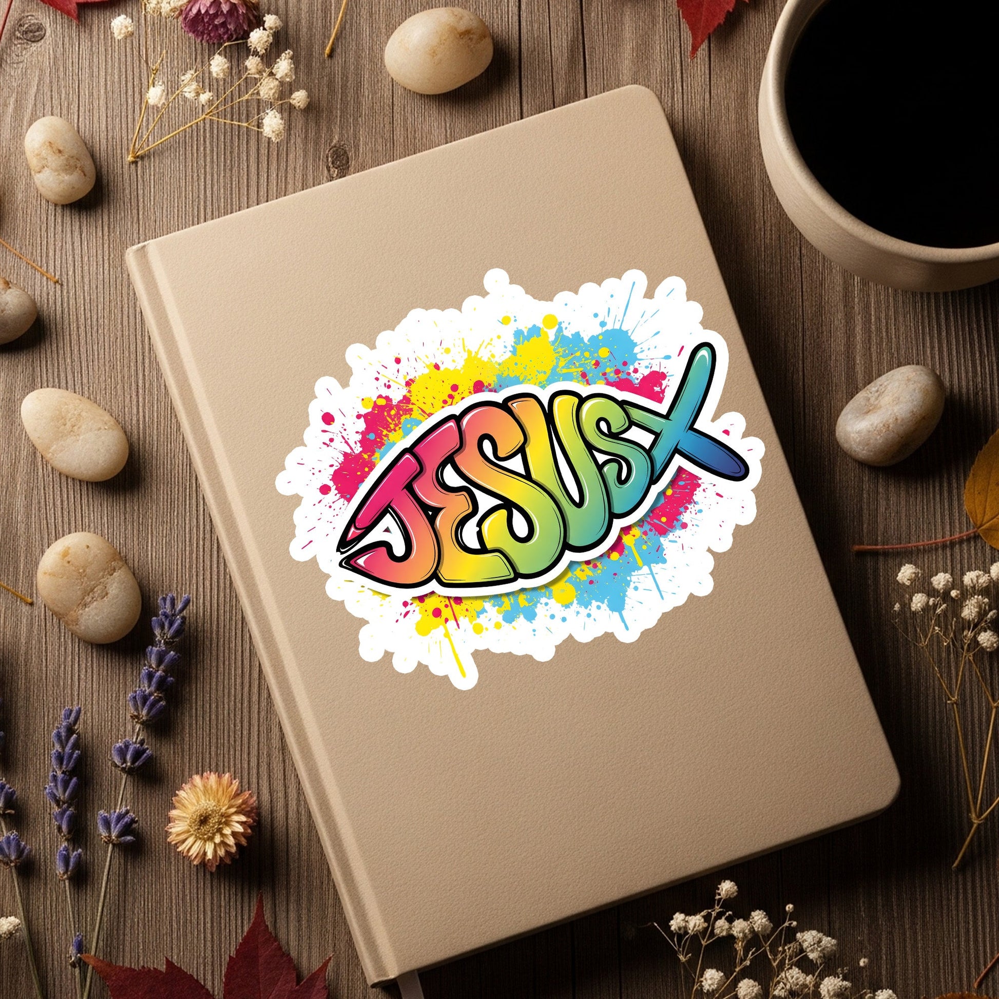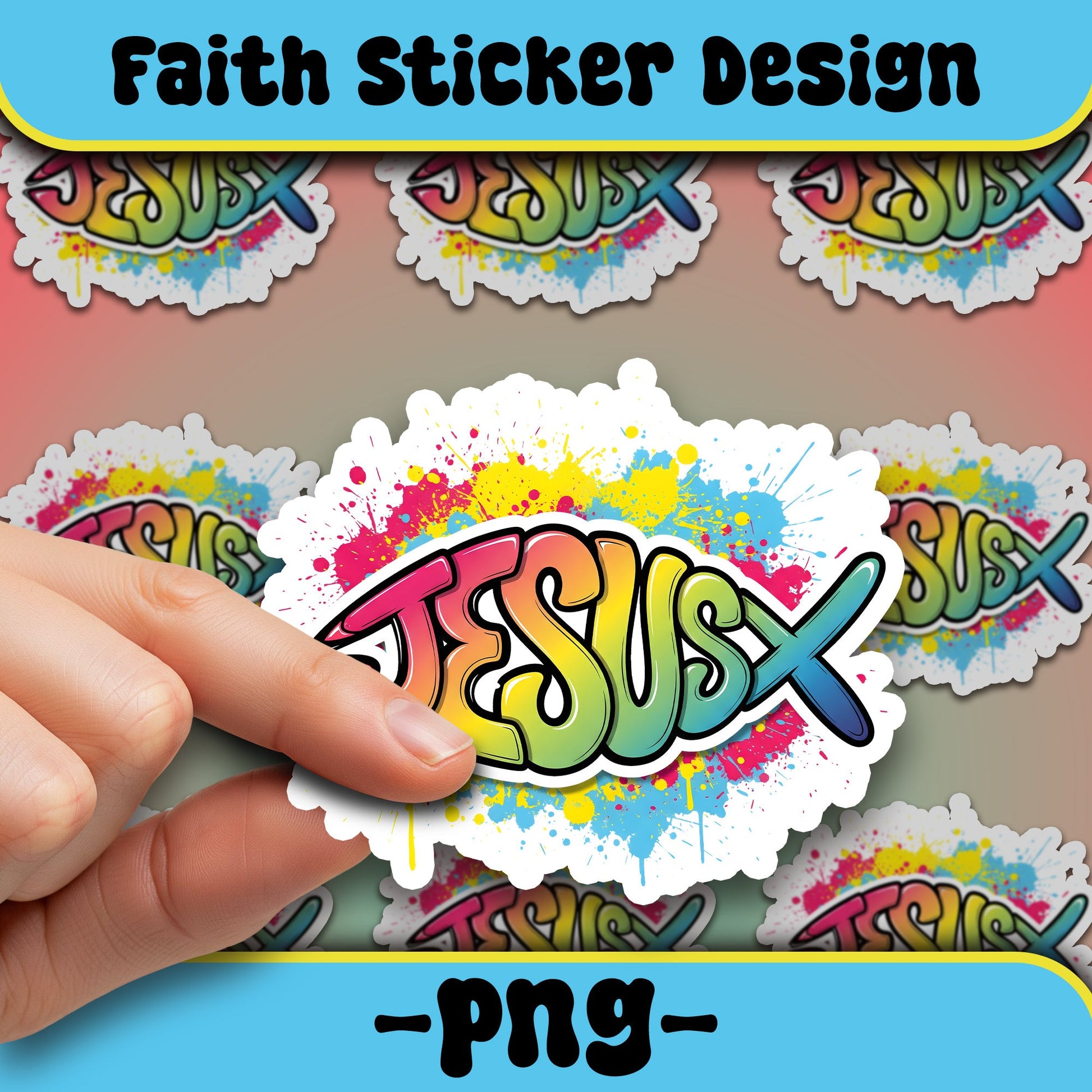 STK116 Colorful Jesus Graffiti Sticker – Christian Waterproof Vinyl Decal – Faith-Based Religious Art for Laptop, Water Bottle, Notebook